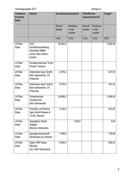 Veranlagungsjahr 2017 (Anlage 3) Landkreis/ Betrieb Grundwasserentnahme Oberflächen- Entgelt kreisfreie wasserentnahme Stadt Brauch- Bewässe- Brauch- Bewässe- wasser rungs- wasser rungs- wasser wasser m3/a m3/a m3/a m3/a EUR LK Elbe- KVH 46.300,0 4.630,00 Elster Kartoffelverarbeitung Hirschfeld GMBH (ehem. Max Helmer GmbH) LK Elbe- Forstbaumschulen "Fürst Elster Pückler" Zeischa LK Elbe- Osterhuber Agrar GmbH, 5.475,0 547,50 Elster Bad Liebenwerda, OT Prieschka LK Elbe- Osterhuber Agrar GmbH, 5.475,0 547,50 Elster Bad Liebenwerda, OT Prieschka LK Elbe- Schweinemast 30.900,0 3.090,00 Elster Oschätzchen, Bad Liebenwerda LK Elbe- Produktiv und Service 9.125,0 912,50 Elster Agro GmbH Massen & Co.KG, Massen LK Elbe- Spargelbau GmbH 1.000,0 0,00 Elster Sallgast Brunnen Dollenchen LK Elbe- Agrargenossenschaft 7.008,0 700,80 Elster Stolzenhain eG, Brandis LK Elbe- (Agrar GbR Klopp- 6.504,3 650,43 Elster Nitsche) neu: GbR Hillmersdorf 5