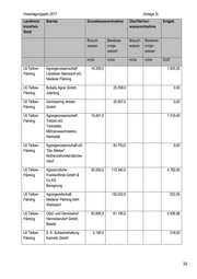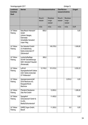 Veranlagungsjahr 2017 (Anlage 3) Landkreis/ Betrieb Grundwasserentnahme Oberflächen- Entgelt kreisfreie wasserentnahme Stadt Brauch- Bewässe- Brauch- Bewässe- wasser rungs- wasser rungs- wasser wasser m3/a m3/a m3/a m3/a EUR LK Prignitz Gut Groß Langerwisch 14.600,0 1.460,00 Hölscher GbR, Groß Pankow OT Groß Langerwisch LK Prignitz Brandenburger 257.000,0 1.799,00 Gemüsekontor GmbH & Co. KG, Wittstock OT Fretzdorf LK Prignitz Ferkelaufzucht Kehrberg, 213,0 0,00 Groß Pankow OT Kehrberg LK Spree- Spreewälder Gemüsehof 242.844,0 2.370,93 Neiße Ricken KG, Burg LK Spree- Ehlego Landkost GmbH, 82.554,0 9.493,71 Neiße Roggosen LK Spree- AGRAR-Genossenschaft 12.775,0 3.750,0 1.277,50 Neiße "Im Spreewald" e.G. Werben LK Spree- Broilermast Vetschau eG 8.800,0 880,00 Neiße LK Spree- SPREEFA GmbH 50.000,0 5.000,00 Neiße Genthin, SMA Löschen, Drebkau OT Laubst LK Spree- SPREEFA GmbH, Betr. 23.352,0 2.335,20 Neiße Wadelsdorf Genthin OT Gladau LK Spree- Agrargenossenschaft 29.200,0 2.920,00 Neiße Gahry eG, Wiesengrund 29