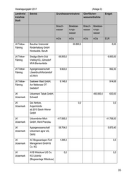 Veranlagungsjahr 2017 (Anlage 3) Landkreis/ Betrieb Grundwasserentnahme Oberflächen- Entgelt kreisfreie wasserentnahme Stadt Brauch- Bewässe- Brauch- Bewässe- wasser rungs- wasser rungs- wasser wasser m3/a m3/a m3/a m3/a EUR LK Teltow- Baruther Urstromtal 60.880,0 0,00 Fläming Rinderhaltung GmbH Horstwalde, Baruth LK Teltow- Stadtgut Berlin Süd 68.500,0 6.850,00 Fläming Vrieling KG, Jühnsdorf MVA Blankenfelde LK Teltow- Agrargenossenschaft 9.923,0 992,30 Fläming Löwenbruch/Kerzendorf eG MVA LK Teltow- Saalower Mast GmbH, 9.146,8 914,68 Fläming Am Mellensee OT Gadsdorf LK Uckermark Tabak GmbH, 450.000,0 630,00 Uckermark Schwedt LK Gut Kerkow, 0,0 0,0 Uckermark Angermünde ab 2015 Sarah Wiener GmbH LK Uckermärker Milch 417.565,0 41.756,50 Uckermark GmbH, Werk Prenzlau LK Agrargenossenschaft 58.704,0 5.870,40 Uckermark Uckermark agrar eG, Göritz LK AC Biogasanlagen Fünf 1.265,0 0,0 Uckermark Management GmbH & Co. KG LK AVS WilsickowI UG Co. 0,0 0,0 Uckermark KG Löcknitz (Biogasanlage Wilsickow) 35