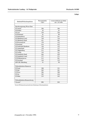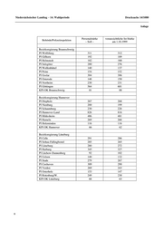 Niedersächsischer Landtag - 14. Wahlperiode Drucksache 14/1080 Anlage Personalstärke voraussichtliche Ist-Stärke Behörde/Polizeiinspektion – Soll – am 1.10.1999 Bezirksregierung Weser-Ems PI Aurich 296 286 PI Emden 93 91 PI Leer 230 226 PI Wittmund 81 80 PI Delmenhorst 253 241 PI Oldenburg-Land 140 136 PI Oldenburg-Stadt 421 401 PI Wesermarsch 139 132 PI Emsland 414 412 PI Grafschaft Bentheim 156 155 PI Ammerland 139 137 PI Cloppenburg 212 206 PI Vechta 144 141 PI Osnabrück-Stadt 464 459 PI Osnabrück-Land 377 371 PI Wilhelmshaven 212 201 PI Friesland 144 135 KPI OK Oldenburg 91 90 Polizeidirektion Hannover PI Nord 308 321 PI Süd 269 281 PI West 286 308 PI Ost 363 416 PI Mitte 235 245 Polizeidirektion Braunschweig Gesamt* 806 844 * Bei der PD Braunschweig besteht keine Gliederung in Polizeiinspektionen (Ausgegeben am 1. November 1999) 9