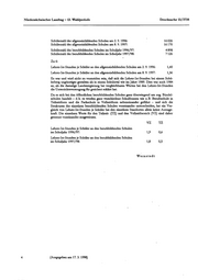 Niedersächsischer Landtag — 13. Wahlperiode Drucksache 13/3738 Schülerzahl der allgemeinbildenden Schulen am 2. 9. 1996: 16 026 Schülerzahl der allgemeinbildenden Schulen am 8. 9. 1997: 15170 Schülerzahl der berufsbildenden Schulen im Schuljahr 1996/97: 4898 Schülerzahl der berufsbildenden Schulen im Schuljahr 1997/98: 7126 Zu 6: Lehrer-Ist-Stunden je Schüler an den algemeinbildenden Schulen am 2. 9. 1996: 1,40 Lehrer-Ist-Stunden je Schüler an den allgemeinbildenden Schulen am 8. 9. 1997: 1,36 Es war und wird nicht zu vermeiden sein, daß sich die Lehrer-Ist-Stunden bei einem Schü- lerberg ungünstiger gestalten als in einem Schülertal wie im Jahre 1989. Dies war auch 1984 so, als die damalige Landesregierung bei vergleichbaren Werten bei den Lehrer-Ist-Stunden die Untertichtsversorgung für gesichert erklärt hat. Da es sich bei den öffentlichen berufsbildenden Schulen ganz überwiegend um sog. Bündel- schulen handelt — d.b. es werden ganz verschiedene Schulformen wie z.B. Berufsschule in Teilzeitform und die Fachschule in Vollzeitform nebeneinander geführt — und sich die Strukturen der einzelnen berufsbildenden Schulen voneinander unterscheiden, hat ein Ver- gleich von Lehrer-Ist-Stunden je Schüler bei den einzelnen Standorten allein keine Aussage- kraft. Die einzelnen Werte für den Teilzeit- (TZ) und den Vollzeitbereich (VZ) sind daher getrennt voneinander ausgewiesen. Vz TZ Lehrer-Ist-Stunden je Schüler an den berufsbildenden Schulen im Schuljahr 1996/97: . 19 0,6 Lehrer-Ist-Stunden je Schüler an den berufsbildenden Schulen im Schuljahr 1997/98: 1,8 0,5 we instedt (Ausgegeben am 17.3. 1998)