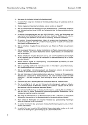 Niedersächsischer Landtag – 15. Wahlperiode Drucksache 15/3459 10. Was waren die häufigsten Gründe für Bußgeldbescheide? 11. In welcher Form erfolgt eine Kontrolle der Kontrolleure (Überprüfung der Landkreise durch die Fachaufsicht)? 12. Welche Angaben enthalten die Kontrollpläne, und wie werden sie überprüft? 13. Wie viel Fachpersonal ist im Ministerium für den ländlichen Raum, Landwirtschaft, Ernährung und Verbraucherschutz (ohne LAVES) als Fachaufsicht über die Lebensmittelkontrolle be- schäftigt? 14. In welchem Umfang wurden seit dem Jahr 2000 (2000/2001…) Kühl- und Gefrierhäuser und Lagerräume kontrolliert (Auflistung nach Landkreisen, Anzahl der Kühlhäuser mit und ohne EU Zulassung und Lagerräume mit und ohne EU Zulassung, Anzahl der Kontrollen)? 15. Zu welchen Untersuchungsergebnissen haben die angeordneten bundesweiten Schwer- punktuntersuchungen in den Kühl- und Gefrierhäusern geführt, wie stellt sich insbesondere das Ergebnis in Niedersachsen dar? 16. Gibt es einheitliche Vorgaben für das Untersuchen und Ziehen von Proben von gefrorenem Fleisch? 17. Gibt es geeignete Maßnahmen, die das Umetikettieren von Fleisch, insbesondere gefrorenem Fleisch, verhindern, bzw. welche Maßnahmen können ergriffen werden, um kriminelles Han- deln zu verhindern? 18. Welche einheitlichen Vorgaben (Erlasse?, wenn ja, seit wann? verpflichtend oder freiwillig?) an die Landkreise gibt es vonseiten der Fachaufsicht für die Risikobewertung der zu kontrol- lierenden Betriebe? 19. Welche Initiativen ergreift die Landesregierung, um Schlachtabfälle (K3-Material) und Stich- fleisch deutlicher zu kennzeichnen? 20. Gibt es regelmäßig stattfindende Informationsrunden mit Veterinären, Lebensmittelkontrolleu- ren, Staatsanwaltschaft und Fachaufsicht? 21. Gibt es regelmäßigen Informationsaustausch und Absprachen zwischen der Lebensmittel- kontrolle, der Gewerbeaufsicht und der Berufsgenossenschaft? 22. Wie viele Veterinäre und Lebensmittelkontrolleure gibt es zur Kontrolle der EU-zugelassenen Betriebe beim Landesamt für Verbraucherschutz, wie viele Kontrollen wurden seit 2000 (2000/2001…) pro Jahr durchgeführt, unter Nennung der Anzahl der EU-zugelassenen Be- triebe? 23. Übernimmt das LAVES auch Aufgaben der Fachaufsicht? Wenn ja, in welcher Form? 24. Wer ist zukünftig für die sich aus dem Verbraucherinformationsgesetz ergebenen Aufgaben (z. B. Informationspflicht der Behörden) zuständig, bzw. sollen die Aufgaben vom ML auf an- dere Behörden (LAVES, Landkreise) übertragen werden? 25. Wer ist für die Veröffentlichung von Verbraucherinformationen zuständig, ML oder LAVES und darf das LAVES, in eigener Verantwortung Untersuchungsergebnisse veröffentlichen, um die Verbraucher möglichst schnell zu informieren? 26. Wie erfolgt der Informationsfluss bei Beanstandungen von den Landkreisen zur Fachaufsicht (Ministerium), bei welcher Art von Beanstandungen und in welcher zeitlichen Abfolge? 27. Wann erfolgt die Weitergabe von anonymen Hinweisen auf gesetzeswidrige Handlungen durch die Landkreise an die Fachaufsicht? 28. In welcher Form kommt das gemeinsame Verbraucherinformationssystem (Land und Kom- munen) zum Einsatz? 29. In welcher Form und in welcher Höhe erfolgt die Kostenerstattung des Landes an die Land- kreise für die übertragene Aufgabenerledigung der Lebensmittelkontrolle? 2