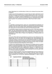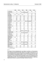 Niedersächsischer Landtag – 15. Wahlperiode Drucksache 15/3459 2000 2001 2002 2003 2004 2005 LK Schaumburg 1 442 1 675 1 828 1 701 1 653 1 668 LK Soltau- 1 426 1 892 2 298 2 086 2 562 2 906 Fallingbostel LK Stade k. A. * k. A. * 1 181 1 863 2 190 2 158 LK Uelzen 855 988 1 015 1 223 852 475 LK Vechta k. A. * 1 229 1 982 1 804 1 837 1 751 LK Verden (Aller) 1491 1 405 1 422 1 238 1 407 1 204 LK Wesermarsch k. A. * 1 200 1 400 1 480 1 300 1 414 LK Wittmund 1053 1 127 1 252 1 081 1 187 1 101 LK Wolfenbüttel 592 385 935 1 123 1 445 1 379 Region Hannover 4 093 3 279 3 451 3 267 3 811 3 867 Landeshaupt- 9 040 8 217 7 861 8 174 8 867 8 005 stadt Hannover Stadt Braun- 2 435 2 283 2 250 2 154 2 344 2 580 schweig Stadt Delmen- 678 536 549 578 687 642 horst Stadt Emden k. A. * 655 643 610 247 619 Stadt Oldenburg 1 995 1 829 2 088 1 782 1 838 1 779 Stadt Salzgitter 1 158 899 632 1 405 1 327 1 200 Stadt Wilhelms- 800 810 1 330 1 368 1 334 1 195 haven Stadt Wolfsburg 1 126 1 164 1 097 1 125 1 069 1 023 Gesamt 61 098 67 565 76 929 79 693 86 206 85 915 * k. A. : nicht mehr zu ermitteln Zu 9: Die Zahl der ergangenen Bußgeldbescheide aufgrund unangemeldeter Kontrollen ergibt sich aus der folgenden Tabelle. Im übrigen wird auf die Ausführungen zu Frage 8 verwiesen. 2000 2001 2002 2003 2004 2005 LK Ammerland 22 42 31 30 32 17 LK Aurich k. A. * k. A. * k. A. * 13 14 13 LK Celle 14 29 53 47 50 36 LK Cloppenburg 53 42 59 37 34 43 LK Cuxhaven 21 35 33 29 45 44 LK Diepholz k. A. * k. A. * 114 97 66 68 LK Emsland 25 23 37 29 24 36 LK Friesland 9 16 10 12 6 12 LK Gifhorn 26 10 18 18 16 28 LK Goslar k. A. * k. A. * 105 130 144 114 LK Göttingen 20 13 25 17 25 19 LK Grafschaft 30 24 31 30 28 40 Bentheim LK Hameln- 7 5 17 8 13 18 Pyrmont LK Harburg 46 29 50 16 45 30 LK Helmstedt 3 6 7 11 8 7 11