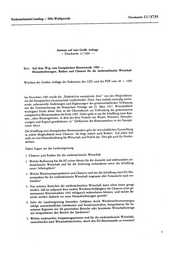 Niedersächsischer Landtag — Elfte Wahlperiode Drucksache 11/3735 7 — —. —. .,. Antwort auf eine Große Anfrage — Drucksache 11/3481 — Betr.: Auf dem Weg zum Europäischen Binnenmarkt 1992 — Herausforderungen, Risiken und Chancen für die niedersächsische Wirtschaft Wortlaut der Großen Anfrage der Fraktionen der CDU und der FDP vom 18. 1. 1989 Im Dezember 1985 wurde die „Einheitliche europäische Akte“ von den Mitgliedsstaa- ten der Europäischen Gemeinschaft verabschiedet. Diese Akte enthält erstmalig umfas- sende, substantielle Änderungen und Ergänzungen der gemeinschaftlichen Verfassung seit der Unterzeichnung der Römischen Verträge am 25. März 1957. Wirtschaftlich wichtigster Punkt dieser Akte ist die Übereinkunft zur Vollendung des gemeinsamen europäischen Binnenmarktes bis Ende 1992. Dabei geht es um die Schaffung eines Rau- mes „ohne Binnengrenzen, in dem der freie Verkehr von Waren, Personen, Dienstlei- stungen und Kapital gewährleistet ist” (Definition des Binnenmarktes in der Europäi- schen Akte). Die Schaffung eines Europäischen Binnenmarktes gibt der wirtschaftlichen Entwicklung in jedem Mitgliedsland neue Chancen. Sie birgt jedoch auch Risiken. Auf jeden Fall stellt sie eine Herausforderung für Wirtschaft und Politik dar. Dies gilt auch für Nieder- sachsen. Daher fragen wir die Landesregierung: I. Chancen und Risiken für die niedersächsische Wirtschaft 1. Welche Bedeutung hat die EG schon derzeit für die deutsche und insbesondere nie- dersächsische Wirtschaft und für die Sicherung vorhandener sowie die Schaffung neuer Arbeitsplätze? 2. Welche Wachstumsperspektiven und Chancen sind mit der Schaffung eines EG-Bin- nenmarktes für die niedersächsische Wirtschaft insgesamt aller Voraussicht nach ver- bunden? 3. Von welchen Bereichen der niedersächsischen Wirtschaft kann schon heute gesagt werden, daß sie aufgrund ihrer starken Wetrbewerbsfähigkeit die Chancen eines ge- meinsamen Binnenmarktes 1992 erfolgreich wahrnehmen können, und welche Be- reiche werden dadurch vor neue Herausforderungen gestellt? 4. Sieht die Landesregierung besondere Gefahren durch Wertbewerbsverzerrungen infolge unterschiedlicher Lohnkosten und Sozialvorschriften, beispielsweise für be- stimmte Regionen wie die grenznahen Bereiche oder bestimmte Wirtschaftszweige wie beispielsweise den Bereich der Spediteure? 5. Welche strukturellen Anspassungsprozesse sind für die niedersächsische Wirtschaft, unterschieden nach Wirtschaftsbereichen, durch den EG-Binnenmarkt zu erwarten?