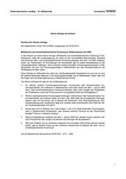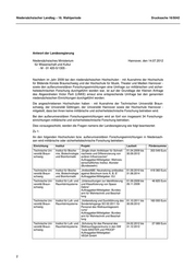 Niedersächsischer Landtag – 16. Wahlperiode Drucksache 16/5042 Universität Hannover: Das Wehrwissenschaftliche Institut für Schutztechnologien (Munster) ist Projektpartner im BMBF- geförderten Verbundprojekt „EMSIN“ (s. Antwort zu 1). Das Projekt „Entwicklung eines Verfahrens zur Qualitätssicherung topografischer Vektordaten“ wird durch das Bundesamt für Kartographie und Geodäsie (BKG) und das Amt für Geoinformationswesen der Bundeswehr (AGeoBw) gefördert (s. Antwort zu 1). Hochschule Hannover: Es laufen zurzeit drei kooperative Promotionen in Zusammenarbeit mit der Universität der Bundes- wehr München. Medizinische Hochschule Hannover (MHH): Kooperationen bestehen hinsichtlich des Medizinstudiums (Bundeswehrquote) und vereinzelt in der Facharztausbildung, wo Sanitätsoffiziere z. B. in Kieferchirurgie ihre Facharztausbildung in Kliniken der MHH absolvieren. Tierärztliche Hochschule Hannover (TiHo): Es bestehen Verbindungen der TiHo: – zum Sanitätsamt der Bundeswehr (zwei2 Projekte zur Erhaltung der Lebensmittelsicherheit im Einsatz durch diagnostische Methoden), – zur Wehrtechnischen Dienststelle für Schiffe und Marinewaffen der Bundeswehr in Eckernförde (Projekt zur Untersuchung der Beeinflussung der Meeressäuger durch aktives Sonar im Rah- men des EDA-Projektes „Protection of marine mammals“). Seitens der übrigen Hochschulen wurde Fehlanzeige erstattet. Zu 5: Universität Hannover: Für den Zeitraum seit 2009 existieren an der Universität Hannover neun abgeschlossene und vier laufende - als vertraulich eingestufte - Projekte im Bereich der wehr- und sicherheitstechnischen Forschung. Seitens der übrigen Hochschulen wurde Fehlanzeige erstattet. Prof. Dr. Johanna Wanka 7 (Ausgegeben am 19.07.2012)