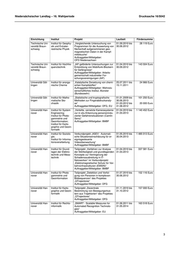 Niedersächsischer Landtag – 16. Wahlperiode Drucksache 16/5042 Einrichtung Institut Projekt Laufzeit Fördersumme Technische Uni- Institut für Geophy- „Vergleichende Untersuchung von 01.09.2010 bis 28 119 Euro versität Braun- sik und Extrater- Programmen für die Auswertung von 30.06.2012 schweig restrische Physik flächenhaft aufgenommenen geo- magnetischen Daten in der Kampf- mittelsuche“ Auftraggeber/Mittelgeber: OFD Niedersachsen Technische Uni- Institut für Hochfre- „AiF-geförderte Untersuchungen zur 01.04.2010 bis 143 504 Euro versität Braun- quenztechnik Entwicklung von Mobilfunk-Blockern 30.09.2012 schweig für Gefängnisse“ Auftraggeber/Mittelgeber: Arbeits- gemeinschaft industrieller For- schungsvereinigungen (AiF) Universität Göt- Institut für anorga- „Katalytische Zersetzung von chemi- 25.07.2011 bis 24 966 Euro tingen nische Chemie schen Kampfstoffen“ 15.11.2011 Auftraggeber/Mittelgeber: Wehrwis- senschaftliches Institut, Munster (Bundeswehr) Universität Göt- Institut für Mathe- „Statistische und kryptografische 01.01.2009 bis 101 250 Euro tingen matische Sto- Methoden zur Fingerabdruckanaly- 30.06.2013 chastik se“ 01.03.2012 bis 20 000 Euro Auftraggeber/Mittelgeber: DFG, EU 31.08.2012 Universität Han- Institut für System „Verteilte, vernetzte Kamerasysteme 01.04.2010 bis 1 140 452 Euro nover Engineering; zur in situ-Erkennung personenindu- 31.03.2013 Institut für Photo- zierter Gefahrensituationen (CamIn- gammetrie und Sens)“ Geoinformation; Auftraggeber/Mittelgeber: BMBF Institut für Karto- graphie und Geoin- formatik Universität Han- Institut für Soziolo- Verbundprojekt „ASEV - Automati- 01.05.2010 bis 1 485 013 Euro nover gie; sche Situationseinschätzung für er- 30.04.2013 Institut für Informa- eignisgesteuerte tionsverarbeitung Videoüberwachung“ Auftraggeber/Mittelgeber: BMBF Universität Han- Institut für Grund- Teilprojekt „Verfahren zur Analyse 01.04.2010 bis 337 581 Euro nover lagen der Elektro- der Störfestigkeit und grundlegenden 31.03.2013 technik und Mess- Konzepte zur Verringerung der technik Schadensausbreitung in IT- Netzwerken“ im Verbundprojekt „Elektromagnetischer Schutz für Ver- kehrsinfrastrukturen (EMSIN)“ Auftraggeber/Mittelgeber: BMBF Universität Han- Institut für Photo Teilprojekt „Detektion und Verfol- 01.07.2010 bis 152 116 Euro nover gammetrie und gung von Personen in komplexen 30.06.2012 Geoinformation Bildsequenzen“ des Projektes „QTrajectores“ Auftraggeber/Mittelgeber: DFG Universität Han- Institut für Karto- Teilprojekt „Dezentrale 01.11.2010 bis 157 000 Euro nover graphie und Geoin- Bestimmung von Bewegungsmus- 31.10.2012 formatik tern aus Trajektorien“ des Projektes „QTrajectores“ Auftraggeber/Mittelgeber: DFG Universität Han- Institut für Rechts- „SMART - Scalable Measures for 01.06.2011 bis 163 518 Euro nover informatik Automated Recognition Technolo- 31.05.2014 gies“ Auftraggeber/Mittelgeber: EU 3