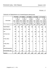 Niedersächsischer Landtag — Zwölfte Wahlperiode Drucksache 12/4278 Zu 30: Im fraglichen Zeitraum sind vier Stellen nicht mit gleicher Wertigkeit zur Wiederbeser- zung freigegeben worden. Dabei handelt es sich um folgende Stellen: — BesGr. C 4 „Sozialpädagogik“, freigegeben nach BesGr. C 3 unter Umwandlung in „Allgemeine Pädagogik‘ — BesGr. C 4 „Didaktik der Physik und Chemie“, freigegeben nach BesGr. C 3 unter Umwidmung in „Chemie und ihre Didaktik“ — BesGr. C 4 „Werken und Kunsterziehung“, freigegeben nach BesGr. C 3 — BesGr. C 3 für „Anglistik“, freigegeben zur Wiederbesetzung nach BesGr. C 2/ Zeit. Die Entscheidung über die künftige Verwendung der Stelle der BesGr. C 4 im Fach Sport ist noch nicht getroffen. Diese Stelle wird gegenwärtig nach BesGr.'C 3 verwaltet. Zu 31: Dem Universitätsstandort Vechta standen/ bzw. stehen in den Jahren 1990 bis 1993 fol- gende Bibliotheksmittel zur Verfügung: 1990 = 290100 DM 1991 297300 DM 1992 = 384700 DM 1993 = 537700 DM. Außerdem standen im Haushaltsjahr 1991 350000 DM für Büchergrundbestandsmittel zur Verfügung. Zu 32: Für alle an der Lehramtsausbildung beteiligten Stellen der Universitäten gilt der seit 1975 bestehende Wiederbesetzungsvorbehalt. Eine Stellenfreigabe erfolgt jeweils nach sorgfältiger Prüfung im Einzelfall. In Abstimmung mit der Universität Osnabrück sind im Juni die Stelle der BesGr. C 3 für „Deutsche Sprache und Didaktik des Deutschunterrichts‘ und im Juli die Stellen der BesGr. C 3 für „Chemie und ihre Didaktik“ sowie für „Werken und Kunsterzie- hung“ zur Wiederbesetzung freigegeben worden. Im November wurde eine solche Entscheidung für die Stelle der BesGr. C 4 für „‚Sozial- pädagogik/ Sozialarbeit‘ getroffen, jedoch unter Umwidmung in „Allgemeine Pädago- gik“ und unter Herabstufung nach BesGr. C 3. Hinsichtlich der künftigen Verwendung der Professorenstelle der BesGr. C 4 im Fach Sport ist noch keine Entscheidung getroffen worden. Erwogen wird die Umwandlung in eine Stelle der BesGr. C 2 auf Zeit (Hochschuldozentur) mit dem Vermerk „ku nach BesGt. C 4" bei Freiwerden der Stelle. Zu 33, 34 und 35: Die Einrichtung, wesentliche Änderung und Aufhebung von Studiengängen ist nach 891 Abs. 2 Nr. 8 NHG Aufgabe des Senats der Hochschule; die betreffenden Beschlüs- se bedürfen nach $ 77 Abs. 5 Nr. 3 NHG der Genehmigung des Ministeriums für Wis- senschaft und Kultur. Dem Ministerium für Wissenschaft und Kultur liegt ein Senats- 11