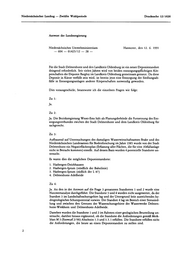 Niedersächsischer Landtag — Zwölfte Wahlperiode Drucksache 12/1626 Antwort auf eine Kleine Anfrage — Drucksache 12/1314 — Betr.: Deponiestandort im Landkreis Oldenburg Wortlaut der Kleinen Anfrage des Abg. Thümler (CDU) vom 17. 4. 1991 In der Antwort auf eine Große Anfrage der CDU-Fraktion betr. Siedtungsabfallentsor- gung in Niedersachsen (Drs 12/1144) weist die Landesregierung darauf hin, daß der Landkreis Oldenburg und die Stadt Delmenhorst ihre Siedlungsabfälle bisher auf einer Deponie entsorgt haben. Die Landesregierung führt in dieser Antwort weiter aus: „Für die Stadt Delmenhorst werden derzeit von der Bezirksregierung Oldenburg intensive Gespräche geführt mit dem Ziel, den Siedlungsabfall der Stadt Delmenhorst auf vertraglicher Basis, d.h. ohne Zuweisung bei anderen Gebietskörperschaften im Regierungsbezirk Weser-Ems für ei- nen beschränkten Zeitraum unterzubringen. Danach soll — wie auch in der Vergangen- heit — der Siediungsabfall von Delmenhorst zusammen mit dem Siedlungsabfall des Landkreises Oldenburg auf eine gemeinsame Deponie verbracht werden.‘ Ich frage die Landesregierung 1. Ist ihr bekannt, daß es der Wille des Kreistages des Landkreises Oldenburg ist, eine Deponie auf dem Gebiet des Landkreises ausschließlich für den eigenen Bedarf zu errichten? 2. Wird sich die Bezirksregierung über den Beschluß des Kreistages hinwegsetzen? 3. Wann und wo hat die Stadt Delmenhorst den Versuch unternommen, auf ihrem Gebiet selbst einen Deponiestandort zu suchen? 4. Wurde diese Standortsuche in Delmenhorst mit der gleichen Intensität wie im Land- kreis Oldenburg betrieben? 5. Welche Mengen Siedlungsabfall werden z. Z. — auf Einwohner und Jahr bezogen — in Bargloy aus Delmenhorst und dem Landkreis Oldenburg angeliefert (Delmen- horst und Oldenburg-Land getrennt darstellen)? 6. Wie wird sich diese Menge — bezogen auf Einwohner und Jahr — in Delmenhorst und dem Landkreis Oldenburg unter Berücksichtigung des unterschiedlichen Ent- sorgungsstandards entwickeln? a) für 1995 b) für 1996. 7. Steht die Landesregierung uneingeschränkt hinter dem geplanten Standort Wunder- burg-Ost für eine gemeinsame Deponie für die Stadt Delmenhorst und den Land- kreis Oldenburg?