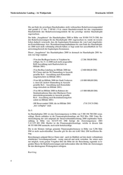 Niedersächsischer Landtag – 14. Wahlperiode Drucksache 14/2418 Die am Ende des jeweiligen Haushaltsjahres nicht verbrauchten Bedarfszuweisungsmittel sind gemäß § 13 Abs. 2 NFAG i.V.m. einem Haushaltsvermerk bei den vorgenannten Haushaltstiteln den Bedarfszuweisungsmitteln für das jeweilige nächste Haushaltsjahr zugewachsen. Der hohe „Ausgaberest“ des Haushaltsjahres 2000 in Höhe von 30 804 519,74 DM, der den Bedarfszuweisungen für das Haushaltsjahr 2001 zugewachsen ist, wurde im wesent- lichen dadurch verursacht, dass die begünstigten Kommunen die vom Land eingeforder- ten Konsolidierungs- bzw. Restrukturierungsmaßnahmen bis zum Ende des Haushaltsjah- res 2000 noch nicht vollständig erbracht haben; er liegt somit fast ausschließlich im Ver- antwortungsbereich der begünstigten Kommunen. Dieser „Ausgaberest“ des Haushaltsjahres 2000 ist demnach im Haushaltsjahr 2001 be- reits wie folgt verplant: (Von den BezRegen bereits in Vorjahren be- (2 286 300,00 DM) willigte, bis 31.12.2000 noch nicht ausgezahlte BzB-Auszahlung nach Baufortschritt im HHJahr 2001) (Von BezReg Lüneburg im HHJahr 2000 der (2 800 000,00 DM) SG Clenze und der SG Dannenberg in Aussicht gestellte BzA - Auszahlung nach Konsolidie- rungsfortschritt im HHJahr 2001) (Vom MI im HHJahr 2000 der Stadt Cuxhaven (10 000 000,00 DM) u. dem LK Lüchow-Dannenberg in Aussicht gestellte BzA - Auszahlung nach Konsolidie- rungs-fortschritt im HHJahr 2001) (Von MI im HHJahr 2000 im Rahmen der (15 000 000,00 DM) Strukturkonferenz Harz den Oberharzer Frem- denverkehrsgemeinden in Aussicht gestellte BzA - Auszahlung nach Restrukturierungsfort- schritt im HHJahr 2001) (MI Reservemittel 2000, die im HHJahr 2001 (718 219,74 DM) „frei verfügbar“ sind) Zu 5: Im Haushaltsplan 2001 ist eine Zuweisungsmasse in Höhe von 5 300 196 700 DM veran- schlagt. Hierin enthalten ist die Finanzausgleichsumlage mit 50,0 Mio. DM. Unter Be- rücksichtigung der sich aufgrund der Steuerverbundabrechnung 2000 ergebenden Nach- zahlung in Höhe von 163 675 101 DM beträgt die Zuweisungsmasse 2001 5 413 871 801 DM. Hierbei ist die Finanzausgleichsumlage, welche in diesem Jahr 48 555 808 DM ausmacht, noch nicht berücksichtigt. Die in der Kleinen Anfrage genannte Finanzausgleichsmasse in Höhe von 5,296 Mrd. DM ist nicht nachvollziehbar. Dasselbe gilt für den mit 6,465 Mrd. DM bezifferten Be- trag. Berechnungen aufgund fiktiver Daten sind - auch im Hinblick auf den damit verbundenen erheblichen Verwaltungsaufwand - wenig sinnvoll und nicht vertretbar. Sie wären auch nur möglich, wenn genaue Vorgaben über die Höhe der der Berechnung zugrunde zu le- genden Masse für Bedarfszuweisungen und insbesondere über die Höhe der Zuweisungen für den übertragenen Wirkungskreis erfolgten. B ar tl i n g 4