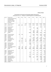 Niedersächsischer Landtag – 14. Wahlperiode Drucksache 14/2418 6FKO1U .UHLVIUHLH6WDGW /DQGNUHLV(LQKHLWVJHPHLQGH 6DPWJHPHLQGHEH UHLFK 6*% /DQGNUHLVH HLQVFKO*HP 5HJLH UXQJVEH]LUN /DQGNUHLV$XULFK %DOWUXP *URHIHKQ *URKHLGH +LQWH ,KORZ -XLVW,QVHOJHPHLQGH 1RUGHQ6WDGW 1RUGHUQH\6WDGW 6GEURRNPHUODQG 'RUQXP6*% 452 Aurich 1.414 2.575 26.568 53.619 73.357 109.809 103.372 106.685 /DQGNUHLV&ORSSHQEXUJ %DUVVHO &DSSHOQ 2OGHQEXUJ &ORSSHQEXUJ6WDGW )ULHVR\WKH6WDGW /LQGHUQ 2OGHQEXUJ 453 Cloppenburg 3.883 7.787 28.234 29.236 20.728 10.873 2.992 3.224 +DUHQ (PV 6WDGW /LQJHQ (PV 6WDGW 0HSSHQ6WDGW 6DO]EHUJHQ '|USHQ6*% +HU]ODNH6*% /DWKHQ6*% 454 Emsland 5.940 4.180 7.098 3.934 9.920 3.324 8.202 6.221 /DQGNUHLV)ULHVODQG -HYHU6WDGW :DQJHUODQG :DQJHURRJH1RUGVHHEDG 9DUHO6WDGW 455 Friesland - - - 500 6.226 3.726 16.201 5.714 %DG%HQWKHLP6WDGW :LHWPDUVFKHQ 1HXHQKDXV6*% 8HOVHQ6*% 456 Grafsch. Bentheim - 1.500 3.000 - - 1.500 3.800 23.976 /DQGNUHLV/HHU -HPJXP 2VWUKDXGHUIHKQ -PPH6*% 457 Leer 623 9.954 34.493 45.349 60.647 80.202 69.020 54.627 10