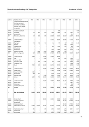 Niedersächsischer Landtag – 14. Wahlperiode Drucksache 14/2418 6FKO1U .UHLVIUHLH6WDGW /DQGNUHLV(LQKHLWVJHPHLQGH 6DPWJHPHLQGHEH UHLFK 6*% /DQGNUHLVH HLQVFKO*HP 5HJLH UXQJVEH]LUN /DFKHQGRUI6*% :DWKOLQJHQ6*% 351 Celle - 1.300 4.776 6.184 13.950 16.724 52.860 49.488 /DQGNUHLV&X[KDYHQ &X[KDYHQ6WDGW /DQJHQ6WDGW 1RUGKRO] 6FKLIIGRUI $P'REURFN6*% %HGHUNHVD6*% %HYHUVWHGW6*% %RHUGH/DPVWHGW6*% +DJHQ6*% +HPPRRU6*% /DQG:XUVWHQ6*% 6LHWODQG6*% 352 Cuxhaven 4.615 3.700 20.111 92.074 151.362 230.720 287.958 328.345 +ROOHQVWHGW6*% 7RVWHGW6*% 353 Harburg - - - - - 507 - 552 /DQGNUHLV/FKRZ 'DQQHQEHUJ &OHQ]H6*% 'DQQHQEHUJ (OEH 6*% *DUWRZ6*% +LW]DFNHU6*% /FKRZ6*% 354 Lüchow-Dannenberg - - 110 2.023 30.664 91.371 113.616 142.688 /DQGNUHLV/QHEXUJ /QHEXUJ6WDGW $PW1HXKDXV 355 Lüneburg - - 30.000 33.000 11.000 74.804 93.821 110.538 /DQGNUHLV2VWHUKRO] *UDVEHUJ /LOLHQWKDO 2VWHUKRO] 6FKDUPEHFN6WDGW 5LWWHUKXGH 6FKZDQHZHGH :RUSVZHGH 356 Osterholz 3.500 6.000 7.000 12.500 37.412 43.050 38.177 29.895 /DQGNUHLV5RWHQEXUJ :PPH 8