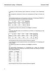 Niedersächsischer Landtag – 15. Wahlperiode Drucksache 15/4202 5. Jahrgangs. Auf diese Schulformen gehen Schülerinnen und Schüler mit allen Empfehlungen über. Dies vorausgeschickt, beantworte ich namens der Landesregierung die Fragen im Einzelnen wie folgt: Zu 1: Die Schullaufbahnempfehlungen der Grundschulen am Ende des 4. Schuljahrgangs 2006/2007 er- gab nachstehende Verteilung auf die weiterführenden Schulformen: HS RS GY insgesamt Schüler 19 670 32 401 33 785 85 856 in % 22,9 37,7 39,4 100,0 Die Aufgliederung der Daten nach Landkreisen ist der Anlage 1 zu entnehmen. Zu 2: Im Schuljahr 2007/2008 verteilen sich die Schülerinnen und Schüler im 5. Schuljahrgang wie folgt auf die Schulformen: HS RS GY IGS FWS insgesamt Schüler 11 614 33 011 38 749 4 151 580 88 105 in % 13,2 37,5 44,0 4,7 0,6 100,0 Die Schulzweige der KGS sind bei den einzelnen Schulformen mitgezählt. Zu den Übergängern aus der Grundschule kommen noch die Wiederholer im 5. Schuljahrgang und sonstige Zugänge. Die Aufgliederung der Daten nach Landkreisen ist der Anlage 2 zu entnehmen. Zu 3: Die durchschnittliche Klassenfrequenz im 5. Schuljahrgang lag zu Beginn des Schuljahres 2007/2008 bei insgesamt 25,5 Schülerinnen und Schülern pro Klasse. Die Verteilung auf die Schul- formen zeigt diese Aufstellung: Schulform 5. Jahrgang HS 16,7 RS 25,8 GY 29,5 IGS 28,2 FWS 29,7 insg. 25,5 Die Schulzweige der KGS sind bei den einzelnen Schulformen mitgezählt. 2