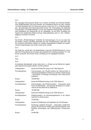 Niedersächsischer Landtag – 14. Wahlperiode Drucksache 14/2890 Die Förderung der Jagdforschung in den zurückliegenden Jahren erfolgte in vergleichba- rem Rahmen wie 2001. Eine detaillierte Auflistung hierzu wäre zu aufwändig und um- fangreich. Nach § 22 (2) des neuen NJagdG wird die oberste Jagdbehörde künftig jährlich einen Bericht über die Verwendung der Jagdabgabe veröffentlichen, aus dem auch die Themen und Kosten für die Jagdforschung zu entnehmen sind. Zu 7: Nein. In Einzelfällen ist es jedoch sinnvoll, eine Studie über die Interessenvertretung der Jäger in Auftrag zu geben, wenn die private Jägerschaft durch Befragungen oder Mitar- beit einbezogen werden soll. In diesen Fällen ist es wichtig, dass die Landesjägerschaft über ihre landesweiten Unterorganisationen die örtlich ansässigen Jäger über das For- schungsprojekt aufklärt und zur Mitarbeit motiviert. Zu 8: Keine. Zu 9: Entsprechend den Einlassungen in der Vorbemerkung gibt es - vergleichbar den Mitteln für Jagdforschung, die aus der Jagdabgabe finanziert werden - in anderen Einzelplänen keine speziellen Forschungsmittel. Die von den Fragestellern vermuteten „Mittelstands- forschungsmittel“, „Kindertagesstättenforschungsmittel“ oder „Straßenbauforschungs- mittel“ gibt es nicht. Allgemeine Forschungsmittel sind jedoch z. B. in den veranschlagten Zuführungen an die Hochschulen enthalten. Diese Ansätze sind im Einzelplan 06 unter Kapitel 06 08 TGr. 71 - Erhaltung und Förderung der Lehre und Forschung - sowie den Titelgruppen 73 und 74 und im Kapitel 06 09 veranschlagt. Auch im Einzelplan 09 gibt es Ansätze für Auftragsforschung, Untersuchungen und Ver- suche, insbesondere im Hinblick auf eine umwelt- und ressourcenschonende Produktion u. a. (siehe Erläuterungen zu Kapitel 09 03 Titel 538 71 und 09 40 TGr. 63). Darüber hinaus gibt es Forschungsprojekte, welche das Land selbst realisiert oder sich an der Realisierung beteiligt, sofern entsprechende Drittmittel eingeworben werden können. In diesen Fällen sind korrespondierende Einnahme- und Ausgabetitelgruppen ausge- bracht, die eine geordnete Bewirtschaftung der zweckgebundenen Drittmittel ermögli- chen (siehe z. B. Kapitel 15 03 Titelgruppe 75). Bartels 4 (Ausgegeben am 20. November 2001)