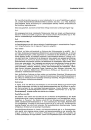 Niedersächsischer Landtag – 16. Wahlperiode Drucksache 16/4422 Informationseinrichtungen in Großschutzgebieten: Von den 14 Informationseinrichtungen in den Großschutzgebieten werden zehn von Umwelt- und Naturschutzverbänden betrieben. Hierzu wurden Verwaltungsvereinbarungen abgeschlossen, auf deren Grundlage die Verbände je 55 000 Euro bis 73 000 Euro jährlich erhalten. Zu 4: Die Haushaltsmittel, die die Verbände erhalten, sind im Haushaltsplan mit der jeweiligen Zweckbe- stimmung veranschlagt und werden in diesem Rahmen in Anspruch genommen. Zu 5: Es erfolgt keine institutionelle Förderung von Umwelt- und Naturschutzverbänden durch Landesmit- tel. Über die in § 63 BNatSchG, § 38 NAGBNatSchG festgelegten Beteiligungsrechte von Verbän- den hinaus erfolgt eine Zusammenarbeit mit Verbänden auf vertraglicher Basis zur Erfüllung von Naturschutzaufgaben. Diese Verträge haben in der Regel eine mehrjährige Laufzeit. Zu 6: Die Beantwortung der Frage 5 gilt, bezogen auf Landesmittel, auch für andere Umwelt- und Natur- schutzverbände. Dr. Stefan Birkner 4 (Ausgegeben am 06.02.2012)