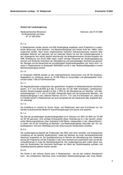 Niedersächsischer Landtag – 15. Wahlperiode Drucksache 15/3083 Antwort der Landesregierung Niedersächsisches Ministerium Hannover, den 27.07.2006 für Wissenschaft und Kultur - M - 01 420-5/543 - Zu 1 a: In Niedersachsen werden derzeit rund 900 Studiengänge angeboten (ohne Programme in auslau- fender Betreuung). Erste Bachelor- und Masterstudiengänge sind bereits Ende der 1990er Jahre eingerichtet worden. Nach einem vergleichsweise intensiven Diskussionsprozess zwischen allen beteiligten Akteuren auf regionaler wie auf nationaler Ebene hat sich der Umstellungsprozess in den vergangenen drei Jahren deutlich beschleunigt; die ländergemeinsamen Strukturvorgaben der KMK (Erstfassung vom 05.03.1999) haben zudem wichtige Eckpunkte der Studiengangsplanung skizziert und Sicherheit hinsichtlich der Akkreditierung und wechselseitigen Anerkennung geschaf- fen. Bezogen auf die Gesamtzahl der grundständigen Studienanfängerplätze (vgl. hierzu auch 1 b) waren in Niedersachsen im Studienjahr 2005/2006 rund 50 % aller Studienanfängerplätze in einem Bachelorstudiengang verortet. Zu 1 b: Im Studienjahr 2005/06 standen an den niedersächsischen Hochschulen rund 29 700 Studienan- fängerplätze zur Verfügung, davon ca. 22 400 Plätze an Universitäten und gleichgestellten Hoch- schulen sowie 7 300 an Fachhochschulen. Zu 1 c: Die Regelstudienzeiten entsprechen den gesetzlichen Vorgaben im Niedersächsischen Hochschul- gesetz i. d. F. vom 24.06.2002 (§ 6 Abs. 3) sowie den von der KMK vereinbarten „Ländergemein- same(n) Strukturvorgaben gemäß § 9 Abs. 2 HRG für die Akkreditierung von Bachelor- und Mas- terstudiengängen“ i. d. F. vom 21.04.2005. Demgemäß fügen sich die konsekutiven Bachelor- und Masterstudiengänge in den zeitlichen Rahmen von 6+4-, 7+3- oder 8+2-Semestern ein, wobei das 6+4-Modell sowohl in Niedersachsen als auch bundesweit bei der Gesamtzahl aller Angebote deut- lich überwiegt. Zu 1 d: Die Ausbildung im Lehramt für Grund- Haupt- und Realschulen sieht eine 6+2-Struktur vor. Ein darüber hinausreichender Bedarf für Ausnahmeregelungen wird derzeit nicht gesehen. Zu 1 e: Die Zahl der grundständigen Studienanfängerplätze ist im Zeitraum von 2001 bis 2005 von 33 400 auf 29 700 gesunken. Eine wichtige Einflussgröße dieser Veränderung ist in den deutlich verbes- serten Betreuungsrelationen (über veränderte CnW-Werte), insbesondere in den „Massenfächern“, zu sehen, die mit der Umstellung auf Bachelor- und Masterstudiengänge verbunden war. Ein „Ka- pazitätsgewinn“ wird sich mittelfristig durch die Verkürzung der Studienzeiten einstellen. Zu 2 a: Die Landesregierung begrüßt die Forderungen des BDA nach einer schnellen und konsequenten Umstellung auf die gestufte Studienstruktur, wobei der Bachelor als erster berufsqualifizierender Abschluss vorgesehen ist. Die Qualitätssicherung im Rahmen der Akkreditierung bzw. Reakkredi- tierung der Programme und der Evaluation in der Lehre erstreckt sich ausdrücklich auch auf die Be- rufsqualifizierung im Zuge der Bachelorprogramme. Die Landesregierung geht zudem davon aus, dass die Studierenden als informierte Nachfrager am Markt der Studienangebote auftreten und Qualitätsansprüche geltend machen werden. Zu 2 b: Der Eintritt in den höheren Dienst setzt in Niedersachsen - wie bei den anderen Dienstherren auch - den erfolgreichen Abschluss eines universitären Masterstudienganges oder eines Master- 3