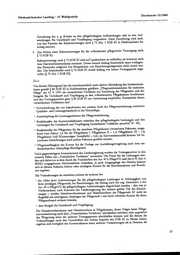 Niedersächsischer Landtag — 13. Wahlperiode 30 - die Organisation und Durchführung von Öffentlichkeitsarbeit mit dem Ziel u.a. der Er- Öffnung von Zugangswegen zu Hilfebedürftigen und pflegenden Angehörigen in Form u.a. von Informations- und Vortragsveranstaltungen zur Herstellung von Erstkontakten und zugleich in präventiver Funktion. Dem Sozialministerium sind bis heute insgesamt 18 Antragsteller aus Braunschweig, Wolfs- burg, Göttingen, Hann. Münden, Goslar, Hannover, Barsinghausen, Fallingbostel, Osna- brück, Meppen und Wallenhorst bekannt. In einer Reihe von Fällen stehen diese Antragstel- ler bezüglich einer kommunalen Mitfinanzierung noch in Verhandlungen mit den entspre- chenden Gebietskörperschaften. ZuC5: Niedersachsen verfügte bereits vor Inkrafttreten des PflegeVG über ein vielfältiges und gut ausgebautes Angebot an Pflegediensten und -eintichtungen. Beispielhaft wird an die rd. 300 Sozialstationen erinnert. Nach dem 1993 veröffentlichten Bericht der Fachkommission Altenpflege waren die pflege- tische Betreuung und Versorgung gut und der vorhandene Pflegestandard die geeignete Basis für Weiterentwicklungen und Verbesserungen der Pflege. Den grundsätzlichen Qualitätsanspruch in der Pflegeversicherung legt $ 11 Abs. 1 SGB XI fest, indem dort von Pflege „entsprechend dem allgemein anerkannten Stand medizinisch- pflegerischer Erkenntnisse“ gesprochen wird, wobei Inhalt und Organisation der Leistungen eine „humane und aktivierende Pflege unter Achtung der Menschenwürde“ zu gewährleisten haben. Für den Bereich der Pflegeversicherung vereinbaren die Spitzenverbände der Pflegekassen, die Bundesarbeitsgemeinschaft der überörtlichen Träger der Sozialhilfe, die Bundesvereini- gung der Kommunalen Spitzenverbände und die Vereinigungen der Träger der Pflegeein- tichtungen auf Bundesebene gemeinsam und einheitlich Grundsätze und Maßstäbe für die Qualität und die Qualitätssicherung sowie für das Verfahren zur Durchführung von Quali- tätsprüfungen. Dies ist für den Bereich ambulanter Pflege, teilstationärer Pflege und der Kurzzeitpflege am 31. 5. 1996 und für den Bereich der stationären Pflege am 21. 10. 1996 geschehen. Die Vereinbarungen sind vertraglicher Art, jedoch mit der Maßgabe, daß sie für alle Pflege- kassen und deren Verbände sowie für die zugelassenen Pflegeeintichtungen unmittelbar verbindlich sind ($ 80 Abs. 1 Satz 3 SGB XD). Sie enthalten Vorgaben über —- Qualitätsmaßstäbe — Qualitätssicherung —- Qualitätsprüfungen. Das SGB XI sieht für die Landesverbände der Pflegekassen ein Prüftecht vor, von dem sie gemeinsam im Sinne von $ 81 Abs. 1 SGB XI Gebrauch machen. Die zu veranlassenden Prüfungen werden vom Medizinischen Dienst der Krankenversiche- rung durchgeführt ($ 53 a Nr. 4, $ 80 Abs. 2 Satz 2 SGB XI) und exstrecken sich auf der Grundlage der Pflegedokumentation auf alle vereinbarten Qualitätsmaßstäbe und die Quali- tätssicherung. Im Zusammenhang mit dem Sicherstellungsauftrag nach $ 69 SGB XI ist aus diesem Prüfrecht bei konkreten Anlässen eine Prüfpflicht abzuleiten. Zur Zeit wird für den Bereich der stationären Pflege eine Harmonisierung der gesetzlichen Heimaufsicht und der Prüfungen durch den Medizinischen Dienst angestrebt. Die Qualität der Pflege wird auf den genannten Rechtsgrundlagen durch die inzwischen beginnenden systematischen Überprüfungen der Pflegeeintichtungen durch den MDK. for- mal und inhaltlich sichergestellt. Dem durch die Presseberichterstattung weitverbreiteten Eindruck, daß Pflege zum Teil durch unqualifizierte Einrichtungen zu Lasten der Solidarge- Drucksache 13/3568