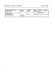 Niedersächsischer Landtag – 14. Wahlperiode Drucksache 14/2501 Landkreis/kreisfreie Stadt benötigtes möglichst Stellen- zusätzliche Anforderun- Schule, Schulort 1. Fach 2. Fach nummer gen, Bemerkungen Wolfsburg, Stadt ' ' ' ' Astrid-Lindgren-Schule beliebig 13014 gewünscht Sport/Sachunterricht Verhaltens- Schule für Lernhilfe gestörtenpäd. 46
