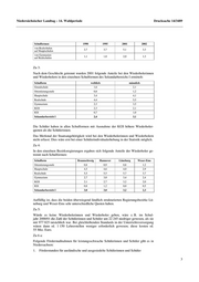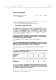 Niedersächsischer Landtag – 14. Wahlperiode Drucksache 14/3489 Antwort der Landesregierung Niedersächsisches Kultusministerium Hannover, den 10. Juni 2002 – 01-01 420/5-II/721-947 – Die Statistik der allgemein bildenden Schulen erfragt zu Beginn eines Schuljahres die Herkunft der Schülerinnen und Schüler differenziert nach – Zugang aus dem vorherigen Schuljahrgang (Versetzungen) und – Wiederholung des gleichen Schuljahrganges. So verfahren nach einer Absprache in der Kultusministerkonferenz (KMK) alle Länder. Als Wiederholerinnen und Wiederholer gelten die Schülerinnen und Schüler, die eine Klassenstufe zum zweiten Mal durchlaufen (z. B. wegen Nichtversetzung oder freiwilli- gem Rücktritt u. a. wegen Erkrankung). Dies ist unabhängig davon, ob die Schulform gewechselt wurde. Maßgeblich für die Wiederholung ist die besuchte Klassenstufe des Vorjahres. Bei den Wiederholern sind demgemäß auch nicht diejenigen enthalten, die nach einer Nachprüfung noch versetzt wurden. Die Daten für Niedersachsen sind ohne die Freien Waldorfschulen und Schulen mit Ge- samtschulcharakter in freier Trägerschaft ermittelt. Die Angaben im Ländervergleich ent- halten auch nicht die Integrierten Gesamtschulen. Dies vorausgeschickt, werden die einzelnen Fragen wie folgt beantwortet: Zu 1: Die Anzahl der wiederholenden Schülerinnen und Schüler sowie deren Anteil an der Ge- samtzahl der Schülergesamtzahl sind für die einzelnen Schulformen und Schuljahrgänge für die Jahre 1990, 1995, 2000 und 2001 der Anlage 1 zu entnehmen. Die Daten über den Wechsel der Schulformen im Sekundarbereich I sind getrennt nach Wiederholern und Versetzungen für die gleichen Jahre in der Anlage 2 aufgeführt. Zu 2: Der Anteil der Wiederholerinnen und Wiederholer hat sich in den einzelnen Schulformen des Sekundarbereichs I wie folgt entwickelt: Schulform 1990 1995 2001 2002 Orientierungsstufe 1,1 1,2 0,8 1,0 Hauptschule 3,1 3,3 3,8 3,8 Realschule 5,3 5,0 4,9 5,0 Gymnasium 3,4 2,9 3,1 2,8 KGS 3,1 2,3 2,8 2,6 IGS 1,3 1,1 1,0 0,8 Sekundarbereich I 3,0 2,9 2,8 2,8 Seit 1990 ist der Anteil der Wiederholerinnen und Wiederholer in allen Schulformen mit Ausnahme der Hauptschulen gesunken. In den Quoten sind auch die Wiederholerinnen und Wiederholer enthalten, die gleichzeitig die Schulform wechselten (2001 jeweils 0,2 Prozentpunkte an Hauptschule und Realschulen). Hinzuweisen ist auf die Schulformwechsler, die zwar versetzt worden sind, aber von der Realschule auf die Hauptschule bzw. vom Gymnasium auf die Realschule übergingen. Diese Quoten haben sich wie folgt entwickelt: 2