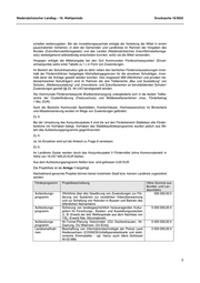 Niedersächsischer Landtag – 16. Wahlperiode Drucksache 16/3932 schaften weiterzugeben. Bei der Investitionspauschale erfolgte die Verteilung der Mittel in einem pauschalierten Verfahren, in dem die Gemeinden und Landkreise im Rahmen der Vorgaben des Bundes (Zukunftsinvestitionsgesetz) und des Landes (Niedersächsisches Zukunftsinvestitionsge- setz) weitestgehend selbstständig entscheiden konnten, wofür sie die Mittel verwenden. Hingegen erfolgte die Mittelvergabe bei den fünf Kommunalen Förderschwerpunkten (Einzel- schwerpunkte siehe erste Tabelle zu 1.) in Form von Zuwendungen. Im Bereich der Schulinfrastruktur gab es dafür neben den fachlichen Fördervoraussetzungen inner- halb der Förderrichtlinien festgelegte Höchstbetragsgrenzen für die einzelnen Schulträger, inner- halb derer die Anträge gestellt werden konnten. Den insgesamt 669 öffentlichen und privaten nie- dersächsischen Schulträgern sind im Rahmen der drei Teilbereiche „Bau und Ausstattung“ von Schulen, „Medienausstattung“ und „Innovations- und Zukunftszentren an berufsbildenden Schulen“ Zuwendungen gemäß §§ 23, 44 LHO bereitgestellt worden. Der Kommunale Förderschwerpunkt Breitbandversorgung untergliederte sich in die beiden Teilbe- reiche der Clusterförderung (Festzuschuss) und Wettbewerbsverfahren (max. Förderbetrag 1 Mio. EUR). Auch die Bereiche Kommunale Sportstätten, Krankenhäuser, Hochwasserschutz im Binnenland und Altlastensanierung wurden im Wege von Zuwendungen gefördert. Zu 3: Bei der Umsetzung des Konjunkturpakets II sind bis auf den Förderbereich Städtebau alle Förder- bereiche mit Vorhaben belegt. Vorhaben des Städtebauförderprogramms wurden jedoch aus Mit- teln des Aufstockungsprogramms gegenfinanziert. Zu 4: Ja. Im Einzelnen wird auf die Antwort zu Frage 6 verwiesen. Zu 5: Im Landkreis Goslar werden durch das Konjunkturpaket II Fördermittel (ohne Kommunalanteil) in Höhe von 18 237 949,23 EUR fließen. Aus dem Aufstockungsprogramm fließen bzw. sind geflossen 0,00 EUR. Die Projektliste ist als Anlage 1 beigefügt. Nachstehend genannte Projekte können keiner kreisfreien Stadt bzw. keinem Landkreis zugeordnet werden: Förderprogramm Projektbeschreibung Höhe (Summe aus Bundes- und Lan- desmitteln) Aufstockungs- (Richtlinie über die) Gewährung von Zuwendungen zur För- 500 000,00 € programm derung von Systemen zur verstärkten Videoüberwachung und zur Schaltung von Notrufen in Bussen und Bahnen des öffentlichen Nahverkehrs Aufstockungs- Sicherung von landesgeschichtlich herausragenden Kultur- 5 000 000,00 € programm gütern für Forschungs-, Studien- und Ausstellungszwecken (z. B. Erwerb der drei Welfenpokale aus dem Nachlass von YSL, Erwerb Nds. Münzkabinett) Aufstockungs- Ith-Tunnel-Planung Holzminden (OU Eschershausen, Ith- 5 000 000,00 € programm Querung, OU Weenzen, OU Eime) Landesmaßnah- Beschaffung von Informationstechnologie der Polizei Land 2 000 000,00 € men Niedersachsen (COGNOS/Unfalltypensteckkarte und elekt- ronische Kriminalakte - vgl. hierzu auch Ident.-Schlüssel NI-03-088) 5