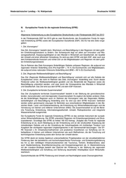 Niedersächsischer Landtag – 16. Wahlperiode Drucksache 16/3932 III. Europäischer Fonds für die regionale Entwicklung (EFRE) Zu 1: Allgemeine Vorbemerkung zu den Europäischen Strukturfonds in der Förderperiode 2007 bis 2013 In der Förderperiode 2007 bis 2013 gibt es zwei Strukturfonds, den Europäischen Fonds für regio- nale Entwicklung (EFRE) sowie den Europäischen Sozialfonds (ESF). Die EU hat drei Ziele vorge- geben: 1. Ziel „Konvergenz“ Das Ziel „Konvergenz“ besteht darin, Wachstum und Beschäftigung in den Regionen mit dem größ- ten Entwicklungsrückstand zu fördern. Der Schwerpunkt liegt vor allem auf Innovation und Wis- sensgesellschaft, Anpassungsfähigkeit an den Wandel in Wirtschaft und Gesellschaft, der Qualität der Umwelt und einer effizienten Verwaltung. Es wird aus dem EFRE und dem ESF, aber auch aus dem Kohäsionsfonds finanziert und richtet sich an die Mitgliedstaaten und Regionen mit dem größ- ten Entwicklungsrückstand. Die im Rahmen des Ziels Konvergenz förderfähigen Gebiete umfassen Regionen, die aufgrund von regionalen Kriterien förderfähig sind (Pro-Kopf-BIP < 75 % EU-Durchschnitt) und Mitgliedstaaten, die aufgrund eines nationalen Kriteriums förderfähig sind (BNE < 90 % EU-Durchschnitt). 2. Ziel „Regionale Wettbewerbsfähigkeit und Beschäftigung“ Das Ziel „Regionale Wettbewerbsfähigkeit und Beschäftigung“ erstreckt sich auf alle Gebiete der Europäischen Union, die nicht im Rahmen des Ziels „Konvergenz“ förderfähig sind. Durch dieses Förderziel sollen die Wettbewerbsfähigkeit gestärkt und die Attraktivität der Regionen sowie die Beschäftigung unterstützt werden, und zwar durch die Vorwegnahme des Wandels in Wirtschaft und Gesellschaft. Das Ziel wird aus dem EFRE und dem ESF finanziert. 3. Ziel „Europäische territoriale Zusammenarbeit“ Das Ziel „Europäische territoriale Zusammenarbeit“ besteht in der Stärkung der grenzüberschrei- tenden, transnationalen und interregionalen Zusammenarbeit. Es ergänzt die beiden anderen Ziele, da die förderfähigen Regionen auch im Rahmen der Konvergenz oder der Regionalen Wettbe- werbsfähigkeit und Beschäftigung förderfähig sind. Es wird aus dem EFRE finanziert. Gefördert werden sollen gemeinsame Lösungen für Behörden aus verschiedenen Mitgliedstaaten in den Be- reichen Stadt-, Land- und Küstenentwicklung, die Entwicklung von Wirtschaftsbeziehungen und die Vernetzung von kleinen und mittleren Unternehmen (KMU). Die Zusammenarbeit ist auf die Berei- che Forschung, Entwicklung, Informationsgesellschaft, Umwelt, Risikoprävention und integrierte Wasserwirtschaft ausgerichtet. Der Europäische Fonds für regionale Entwicklung (EFRE) ist das zentrale Instrument der europäi- schen Wirtschaftsförderung. Der EFRE unterstützt Regionen mit Entwicklungsrückstand und Struk- turproblemen. Grundlage des EFRE ist Artikel 160 EG-Vertrag: „Aufgabe des Fonds für regionale Entwicklung ist es, durch Beteiligung an der Entwicklung und an der strukturellen Anpassung der rückständigen Gebiete und an der Umstellung der Industriegebiete mit rückläufiger Tendenz zum Ausgleich der wichtigsten regionalen Ungleichgewichte in der Gemeinschaft beizutragen.“ Der EF- RE finanziert z. B. Infrastrukturmaßnahmen und produktive Investitionen zur Schaffung von Ar- beitsplätzen in kleinen und mittleren Unternehmen wie auch Maßnahmen, die der Forschung und technologischen Entwicklung sowie dem Schutz der Umwelt dienen. Der EFRE deckt ein breites Spektrum unterschiedlicher Projektansätze von der einzelbetrieblichen Förderung über die betriebliche und hochschulspezifische Forschungs- und Entwicklungsförderung bis hin zu den vielfältigen Infrastrukturbereichen wie Tourismus, Verkehr, Breitbandnetze, aber auch Stadtentwicklung, Brachflächenrecycling und Energiemanagement ab. In Übereinstimmung mit der Lissabon-Strategie besteht das Oberziel der Förderung in der Stärkung der regionalen Wettbewerbsfähigkeit und Schaffung und Sicherung dauerhafter Arbeitsplätze durch Wirtschafts- wachstum. Querschnittsziele der EFRE-Förderung sind Umwelt und Nachhaltigkeit sowie Chancengleichheit. 9