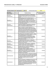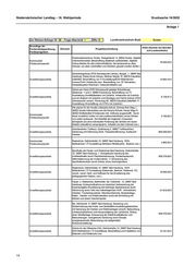 Niedersächsischer Landtag – 16. Wahlperiode Drucksache 16/3932 Konsultationen eingebracht. Sie begrüßt, dass damit die Diskussion über die Ausgestaltung der künftigen Kohäsionspolitik frühzeitig begonnen wurde. Angesichts des teilweise noch enormen regionalpolitischen Entwicklungsbedarfs in der Union und der Belastungen der nationalen Haushalte für die laufenden Maßnahmen zur Stabilisierung der gemeinsamen Währung geht die Landesregierung davon aus, dass der für die kommende Kohäsi- onspolitik verfügbare Finanzrahmen sowohl für Deutschland als auch Niedersachsen geringer sein wird als er im Förderzeitraum 2007 bis 2013 gewesen ist. Zu 2: Projekte der Tourismuswirtschaft (Unternehmen der Reisebranche und des Gastgewerbes, die un- mittelbar am Tourismus verdienen) werden nach den vom MW durch Erlass an die NBank festge- legten Förderregeln für die einzelbetriebliche Investitionsförderung bzw. für einzelbetriebliche In- vestitionsförderungen im Beherbergungsgewerbe aus Mitteln der Gemeinschaftsaufgabe „Verbes- serung der regionalen Wirtschaftsstruktur“ und des EFRE unterstützt (derzeit geregelt durch Erl. d. MW v. 01.11.2010 - Az.: 34). Daneben erfolgt eine Förderung für Maßnahmen im Bereich Tourismus in der Regel nach der Richtlinie des MW über die Gewährung von Zuwendungen zur Stärkung der Wettbewerbsfähigkeit der Tourismuswirtschaft (Erl. d. MW v. 17.07.2007-23-32330/0200; Nds. MBl. 38/2007, S. 979). Die geförderten Maßnahmen dienen der Stärkung der Wettbewerbsfähigkeit der Tourismuswirtschaft, auch wenn die Unternehmen der Tourismuswirtschaft nicht direkter Zuwendungsempfänger sind (Touristische Infrastruktur). Zu 3: Hinweis zum Tabellenaufbau der Antworten zu den Fragen II.3. (GRW), III.3. (EFRE) und VI.3. (Tourismus): In allen drei Bereichen wird eine Vielzahl von Förderfällen aus nationalen GRW-Mitteln und aus eu- ropäischen Mitteln kombiniert gefördert. Alle kombiniert geförderten Projekte finden sich in mehre- ren Listen wieder. Aufgrund dieser Mehrfachbenennung einzelner Projekte können keine Förder- summen über Listen hinweg addiert werden. Im Übrigen siehe Anlage 6. Zu 4: Zu den großen anderen Förderungen und Förderprogrammen, d. h. größer 10 Mio. EUR, in Nieder- sachsen (Stand: Haushaltsplan 2010) gehören u. a.: – die Finanzhilfe an den Landessportbund – das Förderprogramm Familien mit Zukunft - Kinder bilden und betreuen – die Gemeinsame Finanzierung wissenschaftlicher Forschungseinrichtungen mit überregionalem Wirkungskreis – die Zuschüsse des Landes an regionale außerhochschulische Forschungseinrichtungen – die Förderung der Theater in Niedersachsen – die Förderung der Niedersächsischen Staatstheater GmbH – das Hauptschulprofilierungsprogramm – die Landesinitiative Luft- und Raumfahrt. Einzelheiten zu den o. a. Förderungen und Förderprogrammen sowie zu anderen Subventionen und Zuwendungen sind dem neunten niedersächsischen Subventionsbericht (Drs. 16/2398) zu ent- nehmen, der auf Grundlage der Daten zum Haushaltsplan 2010 im Frühjahr 2010 erschienen ist. Der Subventionsbericht erscheint alle zwei Jahre, somit wird der nächste im Frühjahr 2012 aufge- stellt. Als weiteres großes Förderprogramm - außerhalb des Subventionsberichtes - ist die Investitions- förderung für Krankenhäuser zu benennen. 12