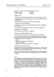 | Niedersächsischer Landtag — Zwölfte Wahlperiode Drucksache 12/3329 Förderung von Projekten des Kinder- und Jugendschutzes 1991: Förderung insgesamt 14 Projekte Ausgaben insgesamt 250000 DM Gefördert wurden: 3 Fortbildungsveranstaltungen für Berufsgruppen zum Thema „Gewalt gegen Kinder“ 1 Fortbildungsveranstaltung für Berufsgruppen zum Thema ‚Extremismus bei Kindern und Jugendlichen“ 7 Projekte gegen Rechtsextremismus und Gewalt von Jugendlichen 1 Theaterstück zum sexuellen Mißbrauch 1 Modellprojekt zur Betreuung und Unterbringung von jugendlichen Trebegänger/in- nen in Hannover | 1 Erstellung eines Tonbandausdrucks zum Thema „Gewalt von Jugendlichen“ Kinderschutzzentrum 370000 DM Für 1992 beträgt der Haushaltsansatz 1180000 DM. . Förderung der Landesstelle Jugendschutz 1991: Die Landesstelle Jugendschutz wird zur Zeit mit jährlich 500000 DM gefördert. Ein wesentlicher Schwerpunkt der Arbeit der Landesstelle Jugendschutz ist der Bereich Gewalt gegen Mädchen und Jungen — Kindesmißhandlung und sexueller Mißbrauch. Zu diesem Thema werden u.a. angeboten: — Seminare — Fortbildungsveranstaltungen für Berufsgruppen — Informationsmaterialien — Organisation, Koordination und Mitarbeit in Arbeitskreisen Förderung des Kinderschutzbundes 1991: Die Landesgeschäftsstelle des Kinderschutzbundes wird zur Zeit mit jährlich 145 600 DM gefördert. Die 48 Ortsverbände des Deutschen Kinderschutzbundes in Niedersach- sen werden von dieser Geschäftsstelle betreut. Von den 48 Ortsverbänden unterhalten 20 eine Beratungsstelle für Kinder und Jugend- liche, die von Gewalt betroffen sind. 16 Beratungsstellen werden vorn Land Niedersach- sen gefördert. Zu 15: Nach Auffassung der Landesregierung können wesentliche Fortschritte sowohl hinsicht- lich wirksamer Prävention als auch hinsichtlich der Hilfe für die Opfer nur erzielt wer- den, wenn es gelingt, einige zentrale Einrichtungen — Kinderschutzzentren und Mäd- chenhäuser — zu schaffen, die auf einer hinreichenden Erfahrungsgrundlage durch eine laufend ausgewertete Arbeit Erkenntnisse gewinnen, wie gewaltbelastete Beziehungen — innerhalb und außerhalb der unmittelbaren Lebensbedingungen der Kinder — ent- stehen, wie Hilfsprozesse in Gang kommen können, welche pädagogischen und thera- peutischen Hilfen angezeigt erscheinen. Prävention und Opferhilfe müssen von den Er- fahrungen der Kinderschutzpraxis und der Mädchenarbeit her ständig überprüft und verbessert werden. 24