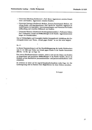 | Niedersächsischer Landtag — Zwölfte Wahlperiode Drucksache 12/3329 mm mm ml mn mn — Universität Oldenburg (Fachbereich 5, Prof. Mees): Aggressionen zwischen Erwach- senen und Kindern, Aggressionen zwischen Kindern; — Universität Göttingen (Fachbereich Medizin, Zentrum Psychologische Medizin, Ab- teilung Kinder- und Jugendpsychiatrie, Prof. Specht/Dr. Hummel): Aggressive Se- xualdelinquenz im Jugendalter, Interventionsstrategien und Prävention bei Kindes- mißhandlung und sexuellem Mißbrauch von Kindern; — Universität Hannover (Fachbereich Erziehungswissenschaften I, Professorin Kühne, Prof. Tiedemann): Gewalt und Mißhandlungen in der Familie, Aggressionsentwick- lungen im Grundschulalter. Eine in Vollständigkeit und Genauigkeit darüber hinausgehende Aufzählung aller For- schungsaktivitäten zum Thema „Gewalt gegen Kinder“ ist zur Zeit nicht möglich. f Zu 17: In diesem Zusammenhang ist auf den Entschließungsantrag des Landes Niedersachsen vom 15.10.1990 zum Verbot von Gewalt gegen Kinder in der Familie hinzuweisen (BR-Dts. 721/90, vgl. zu Frage 14). Eine erneute Bundesratsinitiative erscheint, soweit es sich um den Schutz von Kindern vor körperlichen und psychischen Mißhandlungen in der Familie handelt, derzeit im Hinblick auf den Beschluß der Justizministerinnen- und Justizministerkonferenz nicht erforderlich. Zu verweisen ist weiter auf die Jugend-Sexualstrafrechtsreform (siehe Frage 14). Die Landesregierung wird im Rahmen ihrer Möglichkeiten bei dieser Reform mitwirken. Schoppe 27