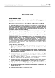 Niedersächsischer Landtag – 16. Wahlperiode Drucksache 16/5154 Antwort der Landesregierung Niedersächsisches Justizministerium Hannover, den 06.09.2012 - 5113 I – 104. 306 - Die Ausbildung der Anwärterinnen und Anwärter in der niedersächsischen Justiz erfolgt seit jeher bedarfsorientiert. Dies gebietet bereits die Fürsorgepflicht, die die niedersächsische Justiz gegen- über den von ihr eingestellten Anwärterinnen und Anwärtern hat. Insoweit ist allerdings zu berücksichtigen, dass der Bedarf mit einem Vorlauf von etwa drei (für die Ausbildung für das zweite Einstiegsamt der Laufbahngruppe 1 - Justizsekretäranwärterinnen und -anwärter -) bis vier (für die Ausbildung für das erste Einstiegsamt der Laufbahngruppe 2 - Rechts- pflegeranwärter/-innen -) Jahren ermittelt werden muss. Aufgrund des erforderlichen Zeitaufwands für die Bewerbungs- und Einstellungsverfahren muss bereits etwa ein Jahr vor Einstellung der An- wärterinnen und Anwärter prognostiziert werden, wie viele Stellen in dem Zeitpunkt, in dem diese ihre Prüfung ablegen werden, wieder besetzt werden können. Diese Prognose ist nicht nur von den vorhersehbaren Altersabgängen abhängig, sondern auch von der sonstigen Fluktuation - bei- spielsweise durch Abgänge wegen Dienstunfähigkeit, Versetzungen in andere Geschäftsbereiche, Entlassungen auf Antrag, Mutterschutz, Elternzeit und Teilzeitbeschäftigung - sowie von Zugängen, z. B. wegen Beendigung der Elternzeit oder Teilzeitbeschäftigung oder Anträgen auf Hinausschie- ben des Ruhestandes. Bei der Planung ist weder von steigenden Belastungszahlen nach PEBB§Y noch von einer beson- ders hohen Zahl an Altersabgängen ab dem Jahr 2014 auszugehen. Die Belastungszahlen sind tendenziell rückläufig und die Zahl der Abgänge bewegt sich im üblichen Rahmen. Trotz der dargestellten Unwägbarkeiten bei der Bedarfsplanung war es bisher immer möglich, den- jenigen Anwärterinnen und Anwärtern, die ihre Laufbahnprüfung mindestens mit der Note „befriedi- gend“ bestehen, eine Übernahmemöglichkeit anzubieten. Lediglich in diesem Jahr ergab sich die Besonderheit, dass aufgrund des Zusammentreffens meh- rerer unvorhersehbarer Umstände nicht alle Prüflinge des ehemaligen mittleren Dienstes in den Justizdienst übernommen werden konnten. Gemeinsam mit dem Innenministerium ist aber eine Weitervermittlung der Betroffenen an andere Landesdienststellen gelungen. Dies vorausgeschickt, beantworte ich die Kleine Anfrage im Namen der Landesregierung wie folgt: Zu 1: Im Jahr 2012 ist die Übernahme der Sekretäranwärterinnen und -anwärter bereits erfolgt, da die Prüfung im Februar abgenommen wurde. Zur Übernahmeperspektive der Prüfungsjahrgänge 2013 und insbesondere 2014 lassen sich der- zeit nur Schätzungen abgeben, teilweise sehen sich die Mittelbehörden für das Jahr 2014 zu keiner Aussage in der Lage. Insgesamt ergibt sich folgendes Bild: Geschäftsbereich 2012 2013 2014 Finanzgericht 0 0 0 Arbeitsgerichtsbarkeit 1 0 1 Verwaltungsgerichtsbarkeit 2 2 Angabe zurzeit (aus OLG-Bez. (aus OLG-Bez. nicht möglich Celle) Celle) Sozialgerichtsbarkeit 3 2 3 OLG-Bezirk Braunschweig 7 8 9 OLG-Bezirk Celle 16 22 Angabe zurzeit nicht möglich OLG-Bezirk Oldenburg 2 12 10 GStA-Bezirk Braunschweig 0 0 0 2