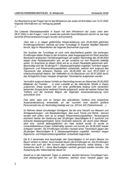 LANDTAG NORDRHEIN-WESTFALEN - 18. Wahlperiode Drucksache 18/320 Zur Beantwortung der Fragen hat mir das Ministerium der Justiz mit Schreiben vom 12.07.2022 folgende Informationen zur Verfügung gestellt: „I. Die Leitende Oberstaatsanwältin in Essen hat dem Ministerium der Justiz unter dem 08.07.2022 zu den Fragen 1 und 2, soweit der justizielle Geschäftsbereich berührt ist, wie folgt berichtet [Personenbezeichnungen wurden anonymisiert]: ‚Dem hier u. a. wegen gefährlicher Körperverletzung vom 25.06.2022 geführten Ermittlungsverfahren, welches auf einer Tumultlage im Essener Stadtteil Altendorf beruht, liegt im Wesentlichen der folgende Sachverhalt zugrunde: Der Auslöser der Tumultlage ist noch nicht abschließend geklärt. Die bisherigen Ermittlungen bieten Anlass zu der Annahme, dass Ausgangspunkt ein Streit zwischen libanesisch-arabischen Familienangehörigen am späten Nachmittag des 25.06.2022 wegen einer Parkplatzsituation war, an der zunächst nur fünf Personen beteiligt waren. Im Anschluss an diesen Streit soll es zu einem Raubdelikt gekommen sein. Beschuldigt wird der 30-jährige B 1 (Staatsangehörigkeit ungeklärt, mehrfach wegen Eigentums- und Körperverletzungsdelikten vorbestraft), welcher sich aufgrund des Tatvorwurfs des schweren Raubes vom 26.06.2022 bis zum 05.07.2022 in Untersuchungshaft befand. Der Haftbefehl ist mit Beschluss vom 05.07.2022 durch das Amtsgericht Essen mangels dringenden Tatverdachts aufgehoben worden. Vermutlich aufgrund dieses Vorfalls am Nachmittag kamen am Abend des 25.06.2022 Mitglieder der Familien … in einer Lokalität an der Altendorfer Straße in Essen zusammen. Diese wurden hier von einer größtenteils bislang nicht namentlich bekannten Gruppe [einer weiteren] Familie aufgesucht, wobei der weitere Verlauf des Treffens und der konkrete Beginn der folgenden Auseinandersetzung noch aufzuklären sind. Fest steht, dass sich im Verlauf des abendlichen Treffens eine körperliche Auseinandersetzung entwickelte, an der nunmehr eine deutlich größere Personenzahl als am Nachmittag beteiligt war (ca. 200 bis 400 [T]eilnehmende …). Im Rahmen dieser tumultartigen Schlägerei, bei der eine Vielzahl von Messern und Schlagwerkzeugen - wie Baseballschläger, aber auch Tische und Stühle - benutzt worden sein sollen, kam es zu einigen Körperverletzungsdelikten. Herausragend erscheint hierbei die Verletzung des 30-jährigen Geschädigten B 2 (syrische und türkische Staatsangehörigkeit, keine Vorstrafen bekannt), der durch einen Messer- stich bzw. -schnitt lebensgefährlich am Hals verletzt wurde. Er wurde im Universitätsklinikum Essen notfallmäßig operiert und konnte am 30.06.2022 wieder entlassen werden. Die Ermittlungen konnten insoweit einen Tatverdacht gegen den 26-jährigen Beschuldigten B 3 (Staatsangehörigkeit ungeklärt, mehrfach wegen Eigentums- und Körperverletzungsdelikten vorbestraft) begründen. Der B 2 seinerseits wird beschuldigt, den Geschädigten G mit einem Messer am Bauch verletzt zu haben. Auch insoweit dauern die Ermittlungen an. Die Ermittlungen richten sich auch auf den Vorwurf des Landfriedensbruchs, wobei bislang – mit Ausnahme des B 3 – keine Beschuldigten namhaft gemacht werden konnten. Die Auswertung des Videomaterials dauert an. Soweit es in den folgenden Tagen zu weiteren, deutlich kleineren Tumultlagen kam, sind diesbezüglich bis auf ein Verfahren, welches einen Verstoß gegen das 2