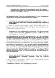 LANDTAG NORDRHEIN-WESTFALEN - 18. Wahlperiode Drucksache 18/320 Waffengesetz zum Gegenstand hat (beschuldigt wird insoweit der 25-jährige B 4, deutscher Staatsangehöriger, keine Vorstrafen), bislang keine weiteren Verfahren bei der Staatsanwaltschaft Essen anhängig.‘ II. Die Generalstaatsanwältin in Hamm hat ihrem Randbericht vom 11.07.2022 zufolge gegen die Sachbehandlung der Leitenden Oberstaatsanwältin keine Bedenken.“ 3. Wie hoch ist das Personenpotential, welches den unter schiedlichen Clans in Essen zugerechnet werden kann? (Bitte nach Clannamen oder -bezeichnung aufschlüsseln) Ausweislich des Lagebildes Clankriminalität Nordrhein-Westfalen 2021 erfasste das Landeskriminalamt Nordrhein-Westfalen 458 Tatverdächtige, die im Zuständigkeitsbereich der Kreispolizeibehörde Essen wohnhaft sind. 4. Inwieweit wurde oder wird das türkische Restaurant „Tava“ beziehungsweise dessen räumliches Umfeld als „gefährlicher“ respektive „verrufener“ Ort durch die Kreispolizeibehörde eingestuft? Die Frage bezieht sich auf die polizeiliche Befugnisnorm des § 12 Abs. 1 Nr. 2 Polizeigesetz Nordrhein-Westfalen (PolG NRW). Danach kann die Polizei die zur Feststellung der Identität einer Person erforderlichen Maßnahmen treffen, wenn sich diese an einem Ort aufhält, bei dem Tatsachen die Annahme rechtfertigen, dass dort Personen Straftaten von erheblicher Bedeutung verabreden, vorbereiten oder verüben, sich dort Personen treffen, die gegen aufenthaltsrechtliche Strafvorschriften verstoßen oder sich dort gesuchte Straftäter verbergen. Eine Einstufung als Örtlichkeit nach § 12 Abs. 1 Nr. 2 PolG NRW ist durch das Polizeipräsidium Essen nicht erfolgt. Vielmehr wurden zum Zwecke der erleichterten Identitätsfeststellung im Zeitraum vom 05. bis zum 11.07.2022 für Teilbereiche des Stadtteils Essen-Altendorf Personenkontrollen auf der Grundlage des § 12a Abs. 1 und 2 PolG NRW (sog. Strategische Fahndung) durchgeführt. Außerdem wurden zum Zwecke der Gefahrenabwehr in dem betroffenen Bereich Aufklärungs- und Raumschutzmaßnahmen durchgeführt sowie eine Mobile Wache aufgestellt. 5. Bei wie vielen Clankriminellen aus Essen wurden in den letzten fünf Jahren aufenthaltsbeendende Maßnahmen eingeleitet? (Bitte die Einzelfälle aufschlüsseln.) Zur Beantwortung hat mir das Ministerium für Kinder, Jugend, Familie, Gleichstellung, Flucht und Integration folgenden Beitrag übersandt: „Eine statistische Erfassung im Sinne der Fragestellung erfolgt nicht.“ 3