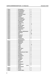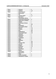 LANDTAG NORDRHEIN-WESTFALEN - 18. Wahlperiode Drucksache 18/647 Rhein Döringbach 1 Rhein Rümpingbach 1 Rhein Kettelerbach 2 Rhein Seegraben 1 Rhein Holtwicker Bach 6 Rhein Felsbach 1 Rhein Ölbach 5 Rhein Huningbach 1 Rhein Vitiverter Bach 1 Rhein Beurserbach 1 Rhein Hegebeck 1 Rhein Ahauser Aa 1 Rhein Vechte 14 Rhein Burloer Bach 1 Rhein Gauxbach 1 Rhein Steinfurter Aa 1 Rhein Düsterbach 1 Rhein Dinkel 12 Rhein Legdener Mühlenbach 4 Rhein Goorbach 5 Rhein Erft 30 Rhein Swistbach 1 Rhein Wallbach 1 Rhein Rotbach 2 Rhein Lechenicher 1 Mühlengraben Rhein Neffelbach 1 Rhein Mühlenerft 1 Rhein Gillbach 1 Rhein Lippe 10 Rhein Lippe 1 Rhein Pader 4 Rhein Roter Bach 3 Rhein Erlbach 2 Rhein Heder 4 Rhein Brandenbäumer Bach 1 Rhein Glenne 1 Rhein Krollbach 2 Rhein Biesterbach 1 Rhein Gieseler 4 Rhein Trotzbach 1 Rhein Quabbe 1 Rhein Ahse 1 Rhein Beverbach 1 Rhein Horne 2 Rhein Süggelbach 2 Rhein Neuer Lüner 1 Mühlenbach Rhein Stever 4 Rhein Funne 1 Rhein Selmer Bach 2 8