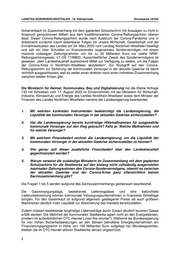 LANDTAG NORDRHEIN-WESTFALEN - 18. Wahlperiode Drucksache 18/552 Die Landesregierung Nordrhein-Westfalen setzt sich intensiv bei der Bundesregierung dafür ein, dass diese auch die kommunalen Stadtwerke, die Basisversorger darstellen, entsprechend der Versorgungssicherheit absichert. Im Hinblick auf die Frage 5 habe ich darauf verwiesen, dass die Landesregierung Nordrhein- Westfalen im Zuge der Corona-Pandemie einen kommunalen Schutzschirm aufgespannt habe und in diesem Zusammenhang auch kommunale Unternehmen mitbedacht worden sind. 3