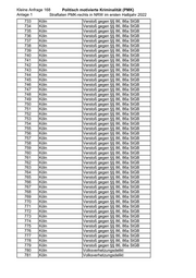 Kleine Anfrage 168 Politisch motivierte Kriminalität (PMK) Anlage 1 Straftaten PMK-rechts in NRW im ersten Halbjahr 2022 635 Holzwickede Verstoß gegen §§ 86, 86a StGB 636 Holzwickede Volksverhetzungsdelikt 637 Horstmar Verstoß gegen §§ 86, 86a StGB 638 Höxter Verstoß gegen §§ 86, 86a StGB 639 Hückelhoven Verstoß gegen §§ 86, 86a StGB 640 Hückelhoven Verstoß gegen §§ 86, 86a StGB 641 Hürtgenwald Verstoß gegen §§ 86, 86a StGB 642 Hürth Beleidigungsdelikt 643 Hürth Verstoß gegen §§ 86, 86a StGB 644 Ibbenbüren Verstoß gegen §§ 86, 86a StGB 645 Ibbenbüren Verstoß gegen §§ 86, 86a StGB 646 Ibbenbüren Verstoß gegen §§ 86, 86a StGB 647 Ibbenbüren Verstoß gegen §§ 86, 86a StGB 648 Ibbenbüren Verstoß gegen §§ 86, 86a StGB 649 Ibbenbüren Verstoß gegen §§ 86, 86a StGB 650 Ibbenbüren Verstoß gegen §§ 86, 86a StGB 651 Inden Sachbeschädigungsdelikt 652 Inden Volksverhetzungsdelikt 653 Iserlohn Bedrohungs-/Nötigungsdelikt 654 Iserlohn Verstoß gegen §§ 86, 86a StGB 655 Iserlohn Verstoß gegen §§ 86, 86a StGB 656 Iserlohn Verstoß gegen §§ 86, 86a StGB 657 Iserlohn Verstoß gegen §§ 86, 86a StGB 658 Iserlohn Verstoß gegen §§ 86, 86a StGB 659 Iserlohn Verstoß gegen §§ 86, 86a StGB 660 Iserlohn Verstoß gegen §§ 86, 86a StGB 661 Iserlohn Verstoß gegen §§ 86, 86a StGB 662 Iserlohn Verstoß gegen §§ 86, 86a StGB 663 Iserlohn Verstoß gegen §§ 86, 86a StGB 664 Iserlohn Verstoß gegen §§ 86, 86a StGB 665 Iserlohn Verstoß gegen §§ 86, 86a StGB 666 Iserlohn Verstoß gegen §§ 86, 86a StGB 667 Iserlohn Verstoß gegen §§ 86, 86a StGB 668 Iserlohn Verstoß gegen §§ 86, 86a StGB 669 Iserlohn Volksverhetzungsdelikt 670 Issum Verstoß gegen §§ 86, 86a StGB 671 Issum Verstoß gg. das Versammlungsgesetz 672 Jüchen Verstoß gegen §§ 86, 86a StGB 673 Kaarst Beleidigungsdelikt 674 Kaarst Volksverhetzungsdelikt 675 Kamen Verstoß gegen §§ 86, 86a StGB 676 Kamen Verstoß gegen §§ 86, 86a StGB 677 Kamen Verstoß gegen §§ 86, 86a StGB 678 Kamp-Lintfort Verstoß gegen §§ 86, 86a StGB 679 Kamp-Lintfort Volksverhetzungsdelikt 680 Kempen Verstoß gegen §§ 86, 86a StGB 681 Kempen Verstoß gegen §§ 86, 86a StGB 682 Kerken Verstoß gegen §§ 86, 86a StGB 683 Kerpen Sachbeschädigungsdelikt
