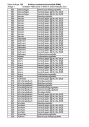 Kleine Anfrage 168 Politisch motivierte Kriminalität (PMK) Anlage 1 Straftaten PMK-rechts in NRW im ersten Halbjahr 2022 880 Meinerzhagen Bedrohungs-/Nötigungsdelikt 881 Meinerzhagen Verstoß gegen §§ 86, 86a StGB 882 Meinerzhagen Verstoß gegen §§ 86, 86a StGB 883 Menden Beleidigungsdelikt 884 Menden Verstoß gegen §§ 86, 86a StGB 885 Menden Verstoß gegen §§ 86, 86a StGB 886 Menden Verstoß gegen §§ 86, 86a StGB 887 Menden Verstoß gegen §§ 86, 86a StGB 888 Menden Verstoß gegen §§ 86, 86a StGB 889 Menden Verstoß gegen §§ 86, 86a StGB 890 Menden Verstoß gegen §§ 86, 86a StGB 891 Menden Verstoß gegen §§ 86, 86a StGB 892 Menden Verstoß gegen §§ 86, 86a StGB 893 Meschede Verstoß gegen §§ 86, 86a StGB 894 Mettmann Verstoß gegen §§ 86, 86a StGB 895 Mettmann Verstoß gegen §§ 86, 86a StGB 896 Mettmann Verstoß gegen §§ 86, 86a StGB 897 Mettmann Verstoß gegen §§ 86, 86a StGB 898 Mettmann Verstoß gegen §§ 86, 86a StGB 899 Mettmann Verstoß gegen §§ 86, 86a StGB 900 Mettmann Volksverhetzungsdelikt 901 Minden Volksverhetzungsdelikt 902 Moers Verstoß gegen §§ 86, 86a StGB 903 Moers Verstoß gegen §§ 86, 86a StGB 904 Moers Verstoß gegen §§ 86, 86a StGB 905 Moers Verstoß gegen §§ 86, 86a StGB 906 Moers Verstoß gegen §§ 86, 86a StGB 907 Moers Verstoß gegen §§ 86, 86a StGB 908 Moers Verstoß gegen §§ 86, 86a StGB 909 Moers Volksverhetzungsdelikt 910 Moers Volksverhetzungsdelikt 911 Möhnesee Verstoß gegen §§ 86, 86a StGB 912 Mönchengladbach Beleidigungsdelikt 913 Mönchengladbach Beleidigungsdelikt 914 Mönchengladbach Beleidigungsdelikt 915 Mönchengladbach Sachbeschädigungsdelikt 916 Mönchengladbach Sachbeschädigungsdelikt 917 Mönchengladbach Sonstiges Delikt 918 Mönchengladbach Verstoß gegen §§ 86, 86a StGB 919 Mönchengladbach Verstoß gegen §§ 86, 86a StGB 920 Mönchengladbach Verstoß gegen §§ 86, 86a StGB 921 Mönchengladbach Verstoß gegen §§ 86, 86a StGB 922 Monheim Beleidigungsdelikt 923 Monheim Verstoß gegen §§ 86, 86a StGB 924 Monheim Verstoß gegen §§ 86, 86a StGB 925 Monheim Verstoß gegen §§ 86, 86a StGB 926 Monheim Verstoß gegen §§ 86, 86a StGB 927 Monschau Volksverhetzungsdelikt 928 Mülheim Bedrohungs-/Nötigungsdelikt