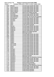 Kleine Anfrage 168 Politisch motivierte Kriminalität (PMK) Anlage 1 Straftaten PMK-rechts in NRW im ersten Halbjahr 2022 978 Netphen Verstoß gegen §§ 86, 86a StGB 979 Netphen Verstoß gegen §§ 86, 86a StGB 980 Netphen Volksverhetzungsdelikt 981 Nettetal Verstoß gegen §§ 86, 86a StGB 982 Neukirchen-Vluyn Beleidigungsdelikt 983 Neukirchen-Vluyn Volksverhetzungsdelikt 984 Neunkirchen Verstoß gegen §§ 86, 86a StGB 985 Neunkirchen Verstoß gegen §§ 86, 86a StGB 986 Neunkirchen Verstoß gegen §§ 86, 86a StGB 987 Neunkirchen-Seelscheid Verstoß gegen §§ 86, 86a StGB 988 Neuss Verstoß gegen §§ 86, 86a StGB 989 Neuss Verstoß gegen §§ 86, 86a StGB 990 Neuss Verstoß gegen §§ 86, 86a StGB 991 Niederzier Volksverhetzungsdelikt 992 Nordkirchen Verstoß gegen §§ 86, 86a StGB 993 Nordkirchen Verstoß gegen §§ 86, 86a StGB 994 Nottuln Verstoß gegen §§ 86, 86a StGB 995 Nottuln Verstoß gegen §§ 86, 86a StGB 996 Oberhausen Beleidigungsdelikt 997 Oberhausen Sachbeschädigungsdelikt 998 Oberhausen Verstoß gegen §§ 86, 86a StGB 999 Oberhausen Verstoß gegen §§ 86, 86a StGB 1000 Oberhausen Verstoß gegen §§ 86, 86a StGB 1001 Oberhausen Verstoß gegen §§ 86, 86a StGB 1002 Oberhausen Verstoß gegen §§ 86, 86a StGB 1003 Oberhausen Verstoß gegen §§ 86, 86a StGB 1004 Oberhausen Volksverhetzungsdelikt 1005 Oberhausen Volksverhetzungsdelikt 1006 Ochtrup Verstoß gegen §§ 86, 86a StGB 1007 Oer-Erkenschwick Straftat gegen die öffentliche Ordnung 1008 Oer-Erkenschwick Verstoß gegen §§ 86, 86a StGB 1009 Oer-Erkenschwick Volksverhetzungsdelikt 1010 Oerlinghausen Sonstiges Delikt 1011 Oerlinghausen Verstoß gegen §§ 86, 86a StGB 1012 Olpe Sonstiges Delikt 1013 Olpe Verstoß gegen §§ 86, 86a StGB 1014 Olpe Verstoß gegen §§ 86, 86a StGB 1015 Olsberg Verstoß gegen §§ 86, 86a StGB 1016 Ostbevern Verstoß gegen §§ 86, 86a StGB 1017 Paderborn Verstoß gegen §§ 86, 86a StGB 1018 Paderborn Verstoß gegen §§ 86, 86a StGB 1019 Paderborn Verstoß gegen §§ 86, 86a StGB 1020 Paderborn Verstoß gegen §§ 86, 86a StGB 1021 Paderborn Verstoß gegen §§ 86, 86a StGB 1022 Paderborn Verstoß gegen §§ 86, 86a StGB 1023 Paderborn Verstoß gegen §§ 86, 86a StGB 1024 Paderborn Verstoß gegen §§ 86, 86a StGB 1025 Paderborn Volksverhetzungsdelikt 1026 Paderborn Volksverhetzungsdelikt