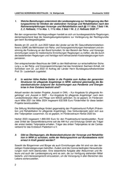 LANDTAG NORDRHEIN-WESTFALEN - 18. Wahlperiode Drucksache 18/832 1. Welche Bemühungen unternimmt die Landesregierung zur Verlängerung des Ret- tungsschirms für Kliniken der stationären Vorsorge und Rehabilitation nach den Rahmenempfehlungen Vorsorge- und Rehabilitation nach §§ 111 Abs. 7 Satz 1 Nr. 2, 2. Halbsatz, 111a Abs. 1, 111c Abs. 5 Satz 1 Nr. 2, 2. Halbsatz SGB V? Bei den vorgenannten Rechtsgrundlagen handelt es sich um bundesgesetzliche Regelungen, dementsprechend liegt die Gesetzgebungskompetenz zur Verlängerung der Rechtsgrundla- gen beim Bundesgesetzgeber. Bereits am 22. und 23. Juni 2022 haben die Länder auf der 95. Gesundheitsministerkon- ferenz (GMK) die Mehrkosten von Reha- und Vorsorgeeinrichtungen thematisiert und ein- stimmig die Forderung an den Bund formuliert, für den Bereich der Reha- und Vorsorge- einrichtungen sowie für medizinische Einrichtungen Regelungen zu treffen, die die durch die bestehenden Regelungen und Verträge nicht refinanzierten Kostensteigerungen kom- pensieren. Den entsprechenden Beschluss der GMK zu den Maßnahmen zur wirtschaftlichen Siche- rung u. a. der Reha- und Vorsorgeeinrichtungen hat das Vorsitzland, Sachsen-Anhalt, mit Schreiben vom 22. Juli 2022 im Auftrag der Länder Herrn Bundesgesundheitsminister Prof. Dr. Lauterbach zugeleitet. 2. In welcher Höhe fließen Gelder in die Projekte zum Aufbau der genannten Strukturen für pflegende Angehörige in NRW, während gleichzeitig die Be- standsstrukturen aufgrund der Auswirkungen aus Pandemie und Energie- krise in ihrer Existenz bedroht sind? Aktuell werden die beiden Projekte „Auszeit in OWL – Kur-Angebote für pflegende An- gehörige“ und „Auszeit in SWF – Kur-Angebote für pflegende Angehörige“ nach dem Landesförderplan Alter und Pflege vom MAGS gefördert. Es ist geplant, im Förderzeit- raum Mitte 2021 bis Mitte 2024 insgesamt 632.608 Euro Fördermittel für diese beiden Projekte bereitzustellen. Die Stiftung Wohlfahrtspflege fördert gegenwärtig den Projektverbund PuRpA (Präven- tion und Rehabilitation für pflegende Angehörige). Das Verbundprojekt setzt sich aus drei Teilprojekten zusammen. Es ist geplant, im Förderzeitraum Herbst 2020 bis Herbst 2023 insgesamt 1.869.000 Euro für den Projektverbund bereitzustellen. Rund zwei Drittel der Gesamtfördersumme soll die AW Kur und Erholungs GmbH als Träger der ersten beiden Teilprojekte erhalten. Träger des dritten Teilprojektes ist der Caritas- verband für das Erzbistum Paderborn e.V. 3. Gibt es Überlegungen, die Bestandsstrukturen der Vorsorge und Rehabilita- tion in NRW zu schützen, sollte der Rettungsschirm auf Bundesebene nicht erneut in Kraft gesetzt werden? Sowohl die Bürgerinnen und Bürger als auch Einrichtungen aller Art sind von den der- zeitigen Kostensteigerungen betroffen. Zudem sind die Corona-bedingten Herausforde- rungen noch nicht überwunden. Eine wesentliche Aufgabe aller Akteurinnen und Ak- teure und auch der Landesregierung wird es sein, die zur Verfügung stehenden Mittel bedarfs- und interessengerecht einzusetzen, um die Versorgung in allen Bereichen des Lebens sicherzustellen. 2