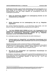 LANDTAG NORDRHEIN-WESTFALEN - 18. Wahlperiode Drucksache 18/686 Die Ministerin für Kinder, Jugend, Familie, Gleichstellung, Flucht und Integration hat die Kleine Anfrage 186 mit Schreiben vom 25. August 2022 im Einvernehmen mit dem Ministerpräsidenten sowie allen übrigen Mitgliedern der Landesregierung namens der Landesregierung beantwortet. 1. Hatten die teilnehmenden Mitglieder der Landesregierung Kenntnis von der Anwesenheit der o.g. Teilnehmer? Nein. 2. Welche Erkenntnisse hat die Landesregierung über die o.g. Pädophilen- Organisation? Eine konkrete Pädophilen-Organisation, zu der Erkenntnisse erfragt werden, wird nicht benannt, so dass der Landesregierung eine Beantwortung nicht möglich ist. 3. Die Partei BÜNDNIS 90/DIE GRÜNEN soll sich in der Vergangenheit für die 4 Legalisierung von sexuellen Handlungen mit Kindern eingesetzt haben. Bestehen nach Kenntnis der Landesregierung Verbindungen zwischen der o.g. Pädophilen- Organisation und der Partei BÜNDNIS 90/DIE GRÜNEN? Der Landesregierung liegen keine Kenntnisse über eine solche Verbindung vor. 4. Inwieweit werden die „ColognePride“ und vergleichbare Veranstaltungen durch das Land NRW gefördert? (Bitte aufschlüsseln nach Ort und Art und Umfang der Förderung.) Folgende Zuwendungen wurden im Kontext der Prides zur Verfügung gestellt: Überregional 416,50 €, Bochum 500,00 €, Duisburg 833,00 €, Essen 607,00 €, Herne 650,00 €, Köln 21.838,11 €, Mönchengladbach 238,00 €, Münster 3.800,00 €, Olpe 175,00 €, Recklinghausen 1.000,00 €, Solingen 595,00 €, Wuppertal 700,00 €. 5. Wie wird bei der „ColognePride“ und vergleichbaren Veranstaltungen der Jugendschutz gewährleistet? Bei öffentlichen Veranstaltungen obliegt gemäß Jugendwohlfahrtszuständigkeitsverordnung (ZuVO JuWo) die Umsetzung des gesetzlichen Jugendschutzes den örtlichen Ordnungs- und Kreispolizeibehörden als zuständigen Behörden im Sinne der §§ 7 und 8 des Jugendschutzgesetzes (JuSchG). 4 https://www.focus.de/politik/deutschland/erste-ergebnisse-der-paedophile-studie-forscher-enthuellen-so- kaempften-gruene-jahrelang-fuer-freien-kinder-sex_id_3077344.html - abgerufen am 21.Juli 2022 2