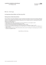 LANDTAG RHEINLAND-PFALZ 18. Wahlperiode Drucksache 18/ 208 11. 06. 2021 Kleine Anfrage der Abgeordneten Karina Wächter und Tobias Vogt (CDU) Radwegeausbau im Rhein-Hunsrück-Kreis Ein gut ausgebautes und attraktives Radwegenetz trägt zur Attraktivität einer Region bei und ist für viele Familien, Pendler und Touristen zu einem wichtigen Standortfaktor geworden. Denn gerade auch durch die vermehrte Nutzung sogenannter E-Bikes kommt der Notwendigkeit eines gut ausgebauten Radwegenetzes auch im ländlichen Raum mit entsprechenden Höhenunter- schieden eine besondere Bedeutung zu. Wir fragen die Landesregierung: 1. Welche Radwege sind im Rhein-Hunsrück-Kreis in den letzten fünf Jahren neu oder ausgebaut worden? 2. Welche Radwege sind im Rhein-Hunsrück-Kreis derzeit im Bau? 3. Wie hoch waren die Kosten (bezogen auf die Maßnahmen in Fragen 1 und 2)? 4. Wie hoch war die jeweilige Zuwendung durch das Land (bezogen auf die Maßnahmen in Fragen 1 und 2)? 5. Gab oder gibt es jeweils weitere Kostenträger, und in welcher Höhe bzw. zu welchem Anteil (bezogen auf die Maßnahmen in Fragen 1 und 2)? 6. Welche neuen Radwegeprojekte im Rhein-Hunsrück-Kreis sollen nach den Vorstellungen der Landesregierung in den nächsten fünf Jahren durchgeführt werden? Karina Wächter und Tobias Vogt Druck: Landtag Rheinland-Pfalz, 15. Juni 2021