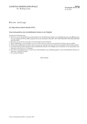 LANDTAG RHEINLAND-PFALZ 18. Wahlperiode Drucksache 18/ 970 01. 09. 2021 Kleine Anfrage des Abgeordneten Martin Brandl (CDU) Unterrichtsausfall an den berufsbildenden Schulen in der Südpfalz Ich frage die Landesregierung: 1. Wie hoch war der strukturelle Unterrichtsausfall an den berufsbildenden Schulen in der Südpfalz (jeweils an der BBS Germers- heim mit Außenstelle Wörth, BBS Landau) jeweils in den Schuljahren 2016/2017, 2017/2018, 2018/2019, 2019/2020, 2020/2021 und 2021/2022? 2. Wie hoch war jeweils der temporäre Unterrichtsausfall an diesen Schulen? 3. Welche Maßnahmen werden ergriffen, wenn ein Lehrer oder eine Lehrerin mit spezifischen Fachkenntnissen ausfällt? 4. Welche dieser Maßnahmen bewirken, dass Unterricht als erteilt gilt und nicht als Unterrichtsausfall in die Statistik einfließt? 5. In welchen Fächern stehen aktuell an den berufsbildenden Schulen in der Südpfalz keine Lehrkräfte mit der spezifischen Aus- bildung für diese Fächer zur Verfügung? 6. Für welche Ausbildungsberufe ist in den letzten fünf Schuljahren das Ausbildungsangebot an den berufsbildenden Schulen ent- fallen bzw. eingestellt worden? 7. Aus welchen Gründen? Martin Brandl Druck: Landtag Rheinland-Pfalz, 2. September 2021