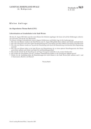 LANDTAG RHEINLAND-PFALZ 18. Wahlperiode Drucksache 18/ 969 01. 09. 2021 Kleine Anfrage des Abgeordneten Thomas Barth (CDU) Lehrersituation an Grundschulen in der Stadt Worms Mit dem 31. August 2021 haben auch die ersten Klassen ihre Schulzeit angefangen. Sie freuen sich auf ihre Erfahrungen, Lehrerin- nen und Lehrer und auf das neue Miteinander. Vor diesem wichtigen Lebensabschnitt unserer jüngsten Schülerinnen und Schüler frage ich die Landesregierung: 1. Wie viele erste Klassen wurden in der Stadt Worms zum 31. August 2021 gebildet (bitte auflisten nach Schule und Stadt/Ort)? 2. Wie viele Lehrerinnen und Lehrer haben die Klassenleitung einer ersten Klasse inne (bitte auflisten nach Schule und Stadt/Ort)? 3. Wie viele erste Klassen wurden am Tag nach der Einschulung nicht durch die Klassenleitung weiterbeschult (bitte Begründung nennen)? 4. Wie viele erste Klassen haben in der Stadt Worms eine Klassenleitung, die zu einem späteren Einstellungstermin den Dienst antritt (bitte auflisten nach Schule und Stadt/Ort und Einstellungstermin)? 5. Was sind die Gründe für die Einstellung der auf Frage 3 bezogenen Lehrkräfte in der zweiten Schulwoche? 6. Wie werden die ersten Klassen, die eine „verspätete“ Klassenleitung erhalten, in der Zwischenzeit adäquat betreut? 7. Welche Art der Ausbildung haben die Klassenleitungen der ersten Klassen in der Stadt Worms (bitte auflisten nach 1. und 2. Staatsexamen, Bachelor und Master)? Thomas Barth Druck: Landtag Rheinland-Pfalz, 2. September 2021