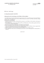 LANDTAG RHEINLAND-PFALZ 18. Wahlperiode Drucksache 18/ 959 01. 09. 2021 Kleine Anfrage der Abgeordneten Jennifer Groß (CDU) Klimawandel und die Auswirkungen auf die Wälder im Westerwaldkreis Unsere Wälder binden und speichern Kohlenstoff und tragen damit ihren Teil zu unserem Ökosystem bei. Ein gesunder Wald, der sich und damit das Klima regulieren kann, ist für einen effektiven Klimaschutz essenziell. Unsere Wälder müssen daher unbedingt geschützt werden – zum Wohle aller! Ich frage daher die Landesregierung: 1. Wie viel CO2 wird von den Wäldern in Rheinland-Pfalz, insbesondere von den Wäldern im Westerwaldkreis, schätzungsweise jährlich kompensiert? 2. Wie viele Bäume wurden in den Jahren 2017, 2018 und 2019 in den Waldbeständen im Westerwaldkreis gepflanzt (bitte Baum- arten sowie deren jeweilige Anzahl auflisten)? 3. Wie viel CO2 wird durch diese Neupflanzungen schätzungsweise pro Jahr gebunden? 4. Welche dieser Baumarten haben die Perspektive, auch im Klimawandel zu bestehen? 5. Wo hat in den Waldbeständen im Westerwald Naturverjüngung stattgefunden (bitte aufschlüsseln, ob diese weitgehend selbst- ständig oder zielgerichtet durch Einwirken des Forstes stattgefunden hat)? 6. Welche Auswirkungen werden durch den Klimawandel auf die Wälder im Westerwaldkreis erwartet? 7. Welche Maßnahmen werden seitens der Landesregierung unternommen, um den Treibhausgasausstoß in Rheinland-Pfalz zu reduzieren? Jennifer Groß Druck: Landtag Rheinland-Pfalz, 1. September 2021