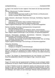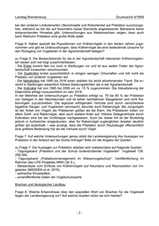 Landtag Brandenburg Drucksache 6/7858 zu Frage 3: Die Ursachen für einen negativen Trend lassen sich wie folgt zusammenfas- sen: Rotmilan, Mäusebussard, Turmfalke, Schleiereule: Nahrungsrückgang, Verluste an Windenergieanlagen (betrifft vor allem Rotmilan und Mäusebussard), Verluste in strengen Wintern (außer Rotmilan). Kiebitz, Bekassine, Uferschnepfe, Rotschenkel, Brachvogel, Wachtelkönig, Seggenrohr- sänger: Lebensraumverlust, ungenügende Reproduktion infolge verstärkten Prädationsdrucks, Wachtelkönig und Uferschnepfe als Langstreckenzieher-Arten: mögliche negative Entwicklungen in den Durchzugs- und Überwinterungsgebieten. Rebhuhn, Neuntöter, Raubwürger, Sperbergrasmücke, Dorngrasmücke: Nahrungsrückgang (Insekten), Rückgang der Randstrukturen wie Feldsäume, Hecken, Ackerrandstreifen, Neuntöter und Sperbergrasmücke als Südostzieher unter den Langstreckenzieher- Arten: mögliche negative Entwicklungen in den Durchzugs- und Überwinterungsgebieten. Feldlerche, Wiesenpieper, Schafstelze, Braunkehlchen, Feldschwirl, Schlagschwirl, Sumpfrohrsänger, Steinschmätzer, Rohrammer: Habitatverluste und Rückgang des Nahrungsangebotes (Insekten), Schafstelze, Braunkehlchen, Sumpfrohrsänger, Steinschmätzer, Feld- und Schlag- schwirl als Langstreckenzieher-Arten: mögliche negative Entwicklungen in den Durchzugs- und Überwinterungsgebieten. Feldsperling, Bluthänfling: Rückgang von Ruderalfluren, Rückgang von Obstgärten und Kleintierhaltungen. Frage 4: Ist die Aussage in der Pressemitteilung des Landesbauernverbandes Branden- burg vom 19.09.2017 zur Auswertung der Großen Anfrage korrekt, dass für die Arten Rotmilan und Feldlerche in Brandenburg ein positiver Trend bzw. eine stabile Entwicklung besteht? zu Frage 4: Die Angaben zur Bestandsentwicklung der Arten Rotmilan und Feldlerche können der tabellarischen Übersicht in der Anlage zu Frage 1 entnommen werden. Prädatoren Frage 5: Für welche Arten der Agrarlandschaft ist Prädation eine der wichtigsten Gefähr- dungsfaktoren und warum? Welche Prädatoren spielen hierbei jeweils eine zentrale Rolle? zu Frage 5: Prädation ist nach der vorliegenden Literatur und Untersuchungen aus Bran- denburg vor allem ein Problem der großen und mittelgroßen Bodenbrüterarten und beein- trächtigt vor allem deren Reproduktion. In Brandenburg ist das Problem nachgewiesen bei der Großtrappe, beim Kiebitz und beim Brachvogel. Fehlender Nachwuchs scheint auch -2-