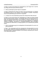 Landtag Brandenburg Drucksache 6/8774 zu Frage 4: Es wird auf die Antwort der Landesregierung zu den Fragen 9 bis 11 der Klei- nen Anfrage 3255 (Drucksache 6/8199) verwiesen. 5. Hält die Landesregierung diese Folgen für akzeptabel? zu Frage 5: Entsprechend der Antwort auf Frage 4 sind die Auswirkungen von Treibstoff- schnellablässen gering und das Verfahren ist als akzeptabel zu bewerten. Wesentlicher Grund ist die Gewährleistung der Sicherheit im Flugverkehr. 6. In welcher Form wird die Bevölkerung derzeit über entsprechende Fälle informiert? zu Frage 6: Es wird auf die Antwort der Landesregierung zu Frage 2 der Kleinen Anfrage 3255 (Drucksache 6/8199) verwiesen. Auf Nachfrage erteilt die DFS entsprechende Aus- künfte. Die Verkehrsministerkonferenz hat die Debatte zur besseren Information der Be- völkerung aufgegriffen und am 19./20. April 2018 den Bund aufgefordert, ein geeignetes Verfahren zu etablieren. Informationen zu Treibstoffschnellablässen sollen unverzüglich und transparent der Öffentlichkeit zur Verfügung gestellt und an Länderbehörden gemeldet werden. 7. Hält die Landesregierung ggf. eine weitergehende Informationspflicht für sinnvoll und strebt sie diese an? zu Frage 7: Die Landesregierung hält eine weitergehende Informationspflicht für sinnvoll und hat deshalb während der Verkehrsministerkonferenz am 19./20. April 2018 für den Beschlussvorschlag „Treibstoffschnellablass (Fuel Dumping); Verbesserung der Informati- on der Öffentlichkeit“ gestimmt. -2-