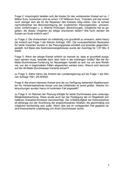 Frage 2: Ursprünglich beliefen sich die Kosten für den verkleinerten Kreisel auf ca. 1 Million Euro, inzwischen sind es schon 1,57 Millionen Euro. Trotzdem soll das immer noch weniger sein als für die Reparatur des Kreisels nötig wären. Das ist schwer nachvollziehbar bei Berücksichtigung der zusätzlichen Planungskosten, provisori- scher Umfahrungen u. ä. Welche Prüfungen, Berechnungen, Vergleiche hat es ge- geben, die dieses Vorgehen als billiger erscheinen ließen? Wie hoch werden die Kosten am Ende wirklich sein? zu Frage 2: Der Kreisverkehr ist vollständig und grundhaft zu erneuern, siehe hierzu die Antwort auf Frage 1 der Kleinen Anfrage 1591. Die voraussichtlichen Baukosten für beide Varianten wurden in der Planungsphase ermittelt und einander gegenüber- gestellt. Auf Basis des Submissionsergebnisses wurde der Zuschlag für 1,57 Mio. € erteilt. Frage 3: Wenn der jetzige Kreisel wirklich so marode ist, dass er grundhaft ausge- baut werden muss, weshalb dann aber nicht in der bisherigen Größe? Bei der 40- Meter-Durchmesser-Forderung für Neuanlagen handelt es sich nur um eine Richtli- nie, von der in begründeten Fällen abgewichen werden kann. Warum wird dennoch auf der 40-Meter-Durchmesser-Variante beharrt? zu Frage 3: Siehe hierzu die Antwort der Landesregierung auf die Frage 1 der Klei- nen Anfrage 1591, DS 6/4020. Frage 4: Bei einem kleineren Kreisel sind die zur Verfügung stehenden Reaktionszei- ten für Verkehrsteilnehmer kürzer und das Unfallrisiko ist somit größer. Welche Un- tersuchungen wurden hierzu im konkreten Fall angestellt? zu Frage 4: Im Rahmen der Planung erfolgte für beide Durchmesser eine Leistungs- fähigkeitsbetrachtung. Diese wurde auch bei der Festlegung der im Regelwerk ent- haltenen Kreiseldurchmesser berücksichtigt. Die Unfallhäufigkeit bei Kreisverkehren ist abhängig von der Anordnung der angeschlossenen Straßen, die gleichmäßig und möglichst rechtwinklig sein sollte. Wenn dies wie im vorliegenden Fall gegeben ist, sind Kreisverkehre unabhängig von ihrem Durchmesser sicher.