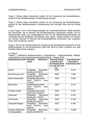 Landtag Brandenburg Drucksache 6/11952 Frage 2: Welche dieser Gemeinden werden mit der Umsetzung des Bundesförderpro- gramms für den Breitbandausbau in Brandenburg versorgt? Frage 3: Welche dieser Gemeinden werden mit der Umsetzung des Bundesförderpro- gramms für den Breitbandausbau in Brandenburg nicht versorgt? Was sind die Gründe dafür? zu den Fragen 2 und 3: Die Antragsunterlagen der Landkreise/kreisfreien Städte enthalten alle Gemeinden, die im Rahmen des Bundesprogramms erschlossen werden. Die An- tragsunterlagen liegen der Landesregierung nicht vor. Die Breitbandverantwortlichen der Landkreise können detaillierte Informationen dazu geben, welche Gebiete und Flächen aus welchen Gründen im Rahmen des Bundesprogramms erschlossen oder möglicher- weise nicht erschlossen werden. Frage 4: Wie ist der aktuelle Stand der Umsetzung des Bundesförderprogramms für den Breitbandausbau im Land Brandenburg? (Bitte den Stand für jeden Landkreis bzw. jede kreisfreie Stadt einzeln angeben.) zu Frage 4: Tabelle 2: Geförderter Breitbandausbau in Brandenburg - Verfahrensstände, Realisie- rungszeiträume und auszubauende Haushalte (Stand 1. August 2019) Gebietskörperschaft Aktueller Verfahrens- Planung Projek- Auszubauende stand trealisierung lt. Haushalte lt. Bundesbescheid Bundesbescheid im Laufe des Jah- res… Barnim Endgültige Bescheide: 2022 4.519 Bund/Land 07/2019 Brandenburg a.d.H. Endgültige Bescheide: 2020 1.460 Bund/Land 06/2019 Dahme-Spreewald Endgültige Bescheide: 2020 4.625 Bund 03/2019, Land 12/2018 Elbe-Elster Endgültige Bescheide 2023 2.123 Bund 05/2019, Land 06/2019 Frankfurt (Oder) Endgültige Bescheide: 2020 2.372 Bund /Land: 05/2019 Oberhavel Endgültige Bescheide 2022 9.748 Bund/Land: 12/2018 Oder-Spree Endgültige Bescheide 2020 9.136 Bund/Land 05/2019 Ostprignitz-Ruppin Endgültige Bescheide: 2022 8.168 Bund 03/2019, Land 05/2019 Potsdam-Mittelmark Endgültige Bescheide. 2021 11.668 2 Projektgebiete Bund/Land 06/2019 -3-