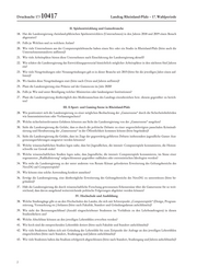 Drucksache 17/ 10417 Landtag Rheinland-Pfalz – 17. Wahlperiode II. Spieleentwicklung und Gamesbranche 18. Hat die Landesregierung rheinland-pfälzischen Spieleentwicklern (Unternehmen) in den Jahren 2018 und 2019 einen Besuch abgestattet? 19. Falls ja: Welchen und zu welchem Anlass? 20. Wie viele Unternehmen aus der Computerspielebranche haben einen Sitz oder ein Studio in Rheinland-Pfalz (bitte auch die Unternehmensstandorte auflisten)? 21. Wie viele Arbeitsplätze bieten diese Unternehmen nach Einschätzung der Landesregierung aktuell? 22. Wie schätzt die Landesregierung das Entwicklungspotenzial hinsichtlich möglicher Arbeitsplätze in den nächsten fünf Jahren ein? 23. Wie viele Neugründungen oder Neuausgründungen gab es in dieser Branche seit 2015 (bitte für die jeweiligen Jahre einen auf- listen)? 24. Wo fanden diese Neugründungen statt (bitte nach Orten und Jahren auflisten)? 25. Plant die Landesregierung eine Präsenz auf der Gamescom im Jahr 2020? 26. Falls ja: Wie und unter Beteiligung welcher Ministerien oder landeseigener Institutionen? 27. Plant die Landesregierung diesbezüglich den Medienausschuss des Landtags einzubeziehen bzw. diesem gegenüber zu berich- ten? III. E-Sport- und Gaming-Szene in Rheinland-Pfalz 28. Wie positioniert sich die Landesregierung zu einer möglichen Beobachtung der „Gamerszene“ durch die Sicherheitsbehörden wie Innenministerium oder Verfassungsschutz? 29. Welche sicherheitsrelevanten Gefahren könnten aus Sicht der Landesregierung von der „Gamerszene“ ausgehen? 30. Sieht die Landesregierung die Gefahr, dass es durch die politische Debatte zu einer ungerechtfertigten pauschalen Kriminali- sierung und Herabsetzung der „Gamerszene“ in der Öffentlichkeit kommen könnte (bitte begründen)? 31. Sieht die Landesregierung die Gefahr, dass im Zuge der gegenwärtig geführten Debatte insbesondere jugendliche Gamer Aus- grenzungserfahrungen ausgesetzt werden könnten? 32. Welche wissenschaftlichen Studien legen nahe, dass bei Jugendlichen, die intensiv Computerspiele konsumieren, die Hemm- schwelle zur Gewalt sinkt? 33. Welche wissenschaftlichen Studien legen nahe, dass Jugendliche, die intensiv Computerspiele konsumieren, im Sinne einer sogenannten „Radikalisierung“ aufgeschlossener gegenüber radikalen oder extremistischen Ideologien werden? 34. Wie steht die Landesregierung zu der unter anderem von Renate Künast geforderten Erweiterung des Geltungsbereichs des NetzDG auf Computerspiele? 35. Wie könnte eine solche Anwendung konkret aussehen? 36. Erwägt die Landesregierung, eine diesbezügliche Erweiterung des Geltungsbereichs des NetzDG zu unterstützen (bitte be- gründen)? 37. Hält die Landesregierung die durch wissenschaftliche Forschung gewonnenen Erkenntnisse über die Gamerszene für so weit- reichend, dass davon ausgehend weiterreichende politische Folgerungen abgeleitet werden können? IV. Hochschule und Ausbildung 38. Welche Studiengänge gibt es an den Hochschulen des Landes, die sich mit Schwerpunkt „Computerspiele“ (Design, Program- mierung, Vermarktung etc.) befassen (bitte nach Fakultät, Standort und Gründungsdatum aufschlüsseln)? 39. Wie sieht der Betreuungsschlüssel (Anzahl eingeschriebener Studenten im Verhältnis zu den Lehrbeauftragten) in diesen Studienfächern aus? 40. Welche Abschlüsse können an den jeweiligen Lehrstühlen erworben werden? 41. Wie hoch sind die entsprechenden Lehrstühle dotiert (bitte nach Fakultät und Standort aufschlüsseln)? 42. Wie viele Studenten haben sich seit Gründung der Lehrstühle bis zum Zeitpunkt der Anfrage an den jeweiligen Lehrstühlen eingeschrieben (bitte nach Standort, Studiengang und Jahren aufschlüsseln)? 43. Wie viele Studenten haben das Studium erfolgreich abgeschlossen (bitte nach Standort, Studiengang und Jahren aufschlüsseln)? 2