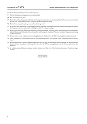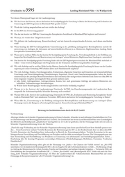 Drucksache 16/ 3595 Landtag Rheinland-Pfalz – 16. Wahlperiode 7. Wie ist nach Kenntnis der Landesregierung die Beratung und Förderung von ESF-Projektträgern in den anderen Bundeslän- dern geregelt a) nach Zuständigkeit, b) nach Umsetzung und ggf. regionalen Strukturen, c) ggf. nach Anzahl der beauftragten Dienstleister? 8. In welchen Bundesländern ist nach Kenntnis der Landesregierung eine private Firma als einziger, zentraler, landesweiter ESF- Dienstleister beauftragt? 9. Nach welchen Maßstäben und auf welcher Grundlage erfolgt die „inhaltliche Vorprüfung“ von Projektanträgen durch Schnei- der Organisationsberatung? 10. Wie lauten die „zuvor festgelegten Kriterien“, welche die Landesregierung in der Drucksache 16/2763 als Antwort auf die Kleine Anfrage 1824 erwähnt und wer hat diese Kriterien formuliert? 11. Hält Schneider Organisationsberatung alle Projektanmeldungen in der „Projektanmeldeübersicht“ für die Verwaltungsbehörde (s. Drucksache 16/2763) fest? 12. Hat es bisher Fälle gegeben, dass Antragsteller bereits bei der inhaltlichen Vorprüfung abgewiesen wurden und nicht in der Projektanmeldeübersicht aufgeführt sind, wenn ja, welche? 13. Welche Arbeitsfelder, Maßnahmen und Veranstaltungen umfasst das Projekt der „Interkulturellen Öffnung der Einrichtungen zur Unterstützung von Familien in Rheinland-Pfalz“? 14. Hat Schneider Organisationsberatung im Kontext des Projektes Leistungen erbracht und wenn ja a) welche Leistungen und b) wie wurde die Begleitung des Projektes durch Schneider Organisationsberatung honoriert? 15. Ist Schneider Organisationsberatung für die von der Landesregierung gegründete „Initiative Gesundheitswirtschaft Rheinland- Pfalz“ tätig gewesen und wenn ja, hat sie dafür Honorar erhalten? 16. Aus welchen Bundesmitteln und/oder Landesmitteln und in welcher Höhe wird das Landesnetzwerk IQ Rheinland-Pfalz fi- nanziert? 17. Schneider Organisationsberatung nimmt im Rahmen des Netzwerkes Aufgaben der Erstberatung, Information und Qualifi- zierung, Vernetzung, Unterstützung und Entwicklung von Strategien wahr (s. Homepage). Welche Mittel und in welcher Höhe erhält die Firma nach Kenntnis der Landesregierung für diese Aufgabe? 18. Wie gestaltet sich das Aufgabenfeld „Integrationsamt Gutachterstelle für Integrationsfirmen“ im Einzelnen und für welche Leis- tungen werden welche Summen gezahlt (bitte nach Jahr und jeweils angewiesene Beträge aufschlüsseln)? 19. Wurde der Auftrag ausgeschrieben, wenn ja, wo, wie hoch war der Auftragswert und wie viele Bewerber gab es? 20. Aus welchen Gründen können diese Aufgaben nicht ministeriumsintern abgedeckt werden? 21. Konnten durch die Beauftragung von Schneider Organisationsberatung Stellen eingespart werden und wenn ja, welche? 22. Ist die Ausschreibung für die „Landesweite Beratungsstelle für die ESF-Förderperiode 2014 – 2020“ inzwischen erfolgt? Wenn ja, wo und wann, über welchen Zeitraum wurde ausgeschrieben, wie viele Bewerber gab es und wie hoch war der Auftrags- wert? 23. Welche Aufgaben übernehmen die einzelnen Netzwerkpartner im Rahmen des Projektes ZAQ (Zukunftsfähige Arbeit, Qua- lifizierung und migrantische Ökonomie) in der neuen ESF-Förderperiode? 24. Ist Schneider Organisationsberatung über Kooperationsprojekte in irgendeiner Form in dieses Projekt eingebunden oder be- teiligt, wenn ja in welchem Umfang und in welcher Form? 25. Wie sieht die wissenschaftliche Begleitung von ZAQ durch das Institut für Sozialpädagogische Forschung aus; welche Ziel- setzungen und welches Konzept liegen dem Auftrag zugrunde und wie werden diese Leistungen honoriert? 26. Worin bestanden die Unterstützungsleistungen von Schneider Organisationsberatung für die Kampagne „Neue Chancen: 6000plus für Jung und Alt?“ und wie wurden diese Leistungen honoriert? 27. Wie hängen der Förderansatz „Fit für den Job“ und die Arbeitsmarktinitiative „Neue Chancen: 6000plus für Jung und Alt“ zu- sammen? 2