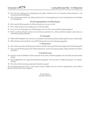 Drucksache 16/ 4779 Landtag Rheinland-Pfalz – 16. Wahlperiode 18. Was sind nach Auffassung der Landesregierung die größten Hindernisse bei der Vermittlung Alleinerziehender in eine existenzsichernde Beschäftigung? 19. Gibt es Erkenntnisse darüber, dass Alleinerziehend sein ein Vermittlungshemmnis bei der Arbeitsplatzsuche ist (Vorbehalte von Arbeitgebern)? III. Beratungsmöglichkeiten und Hilfestellungen 20. Gibt es spezielle Beratungsstellen für Alleinerziehende und wenn ja wie viele? 21. Wie verteilen sich diese auf die Landkreise bzw. kreisfreien Städte? 22. In wie weit ist die Arbeitsagentur bei Hilfestellungen involviert? Gibt es hier spezifische Beratungsangebote? 23. Welche spezifischen Projekte werden seitens der Jobcenter gefördert bzw. welche spezifischen Angebote machen diese zur Unterstützung Alleinerziehender? IV. Fördergelder 24. Welche ESF-Fördergelder sind in den letzten zehn Jahren in die Förderung Alleinerziehender geflossen und in welcher Höhe? 25. Welche Projekte sind innerhalb der neuen ESF-Förderperiode seitens der Landesregierung geplant? V. Wohnsituation 26. Gibt es Erkenntnisse über die Wohnsituation Alleinerziehender und zu spezifischen Schwierigkeiten bei der Wohnungssuche? 27. Gibt es spezielle Wohnprogramme für Alleinerziehende bzw. welche Unterstützung erhalten Alleinerziehende bei der Wohn- raumsuche? VI. Kinderbetreuung 28. Inwieweit werden die Bedürfnisse Alleinerziehender bei der Suche nach Betreuungsplätzen für ihre Kinder besonders berück- sichtigt? 29. Welche Möglichkeiten der ergänzenden Kinderbetreuung (Rand- und Ferienzeiten, Notfallbetreuung) gibt es für Alleiner- ziehende? 30. Wie stellt sich die Finanzierung ergänzender Kinderbetreuung dar? (Soweit geschlechtergetrennte Daten zu den einzelnen Fragen verfügbar sind, bitte die Daten aufgeschlüsselt, nach Geschlecht getrennt, absolut und in Prozent angeben.) Für die Fraktion: Alexander Schweitzer