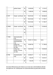 2 großes Cluster 201 26.300,00 12 2.191,67 3 201 13.850,00 2 6.925,00 4 5 FHP Cluster- und Einzel 201 150.372,00 6 25.062,00 2 201 153.319,00 13 11.793,77 3 201 153.319,00 13 11.793,77 4 6 HNEE Cluster- und Einzel 201 21.664,00 1 21.664,00 2 201 3 201 4 7 THWi Systemakkreditie- rung Vorbereitung der 201 145.021,13 Keine keine Systemakkreditie- 2 rung Aufbau Sys- 201 85.997,00 5 17.199,40 temakkr. mit inter- 3 ner Akkr. Aufbau Sys- 201 95.273,00 5 19.054,60 temakkr. mit inter- 4 ner Akkr. 8 FHB Clusterakkreditie- 201 80.935,77 5 16.187,15 rung 2 201 104.375 7 14.910,71 3 201 104.375 7 14.910,71 4 Die starke Differenzierung der Kosten ist zum einen den unterschiedlichen Akkredi- tierungsformen inkl. Aufbauphasen der Systemakkreditierung geschuldet (Einzelak-