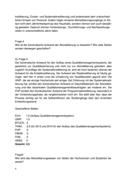 kreditierung, Cluster- und Systemakkreditierung) und andererseits dem unterschied- lichen Einsatz von Personal. Zudem folgen einzelne Akkreditierungsvorgänge im Ab- lauf nicht dem Jährlichkeitsprinzip des Haushalts, sondern können sich auch überjäh- rig gestalten. Dadurch können Vorbereitungs-, Durchführungs- und Nachbereitungs- zeiten in unterschiedliche Jahre fallen. Frage 4 Wie ist der bürokratische Aufwand der Akkreditierung zu bewerten? Wie viele Stellen wurden deswegen geschaffen? Zu Frage 4: Der bürokratische Aufwand für den Aufbau eines Qualitätsmanagementsystems, der gesetzlich zur Qualitätssicherung und nicht nur zur Akkreditierung gefordert, aber zugleich Grundlage der Systemakkreditierung ist, wird als hoch bewertet, ebenso der Aufwand für die Erstakkreditierung. Der Aufwand der Reakkreditierung ist häufig ge- ringer, weil hier in erster Linie die Umsetzung von Qualitätszielen geprüft wird. Die UNIP, die als einzige Hochschule seit einiger Zeit Erfahrung mit der Systemakkredi- tierung hat, schätzt den bürokratischen Aufwand im Geschäftsbereich der Akkreditie- rung und des dezentralen Qualitätsmanagementbeauftragten als moderat ein. Die FHP schätzt den bürokratischen Aufwand der Programmakkreditierung, besonders in der Vorbereitungsphase, als vergleichsweise hoch ein. Sie stellt aber fest, dass der Prozess wichtig sei für die Selbstreflexion der Studiengänge über den erreichten Entwicklungsstand. Geschaffene Stellen: EUV: 1,5 (Aufbau Qualitätsmanagementsystem) UNIP: 1,0 BTUCS: 0 THWI: 2,0 (für 2013 und 2014 für den Aufbau des Qualitätsmanagementsystems) FHP: 0 FBKW: 0 FHB: 0 HNEE: 0 Gesamt: 4,5 Frage5 Wie wird das Akkreditierungswesen von Seiten der Hochschulen und Studenten be- wertet?